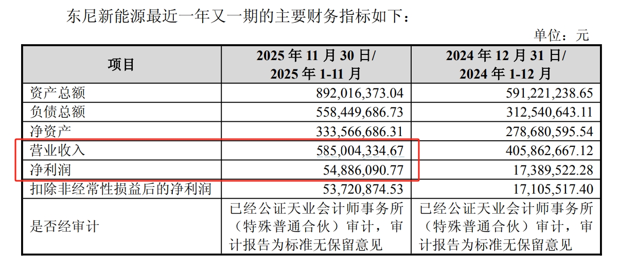 2025年半年度披露:东尼新能源上半年营业收入2.66亿元,净利润2632万元。