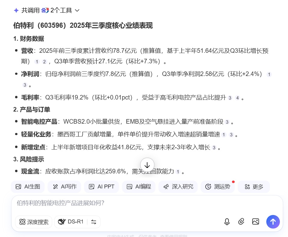我用AI测算了一下伯特利的三季度业绩表现,这个准不准