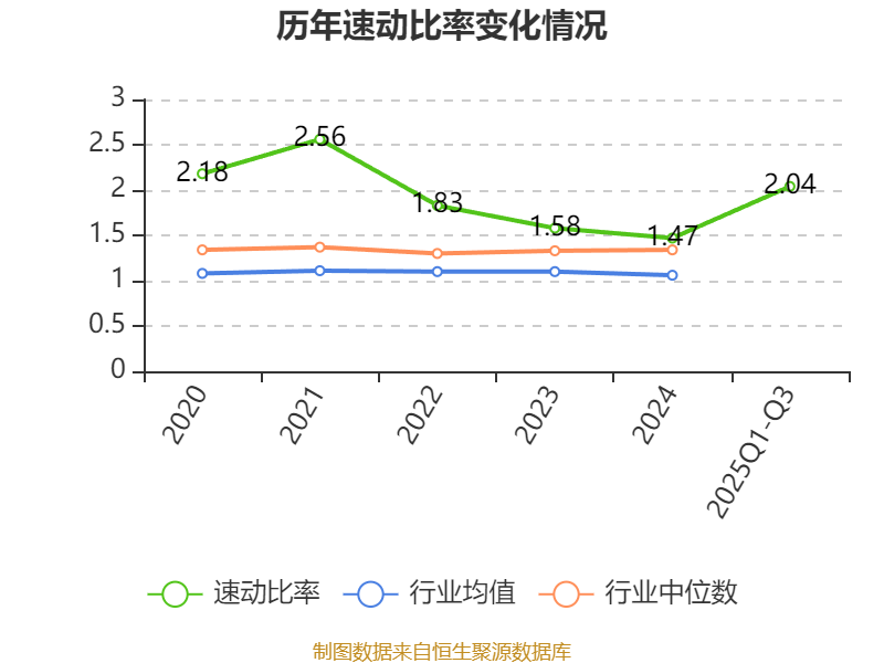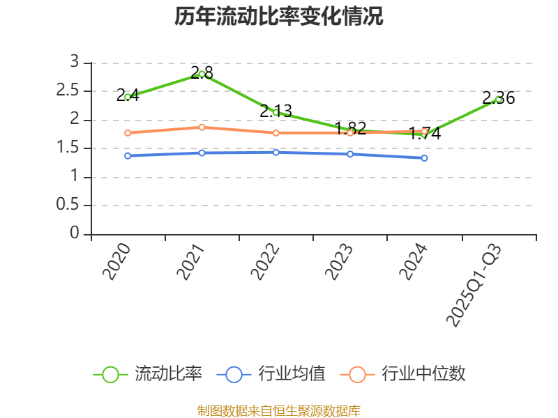 2025年前三季度,公司流动比率为2.36,速动比率为2.04。