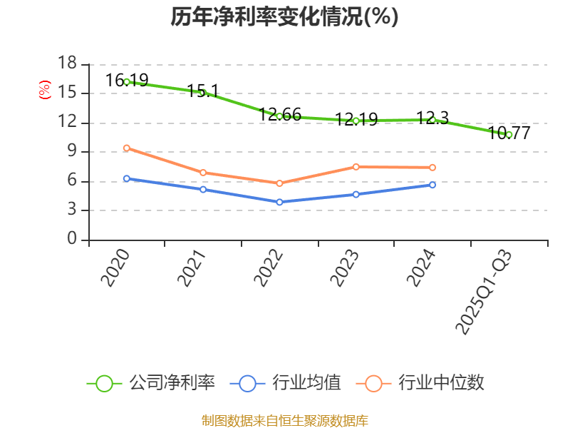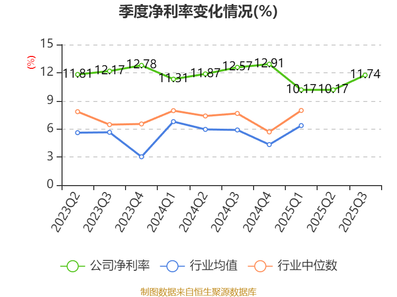 盈利能力方面, 2025年前三季度公司加权平均净资产收益率为12.52%,同比下降0.56个百分点。公司2025年前三季度投入资本回报率为9.94%,较上年同期下降1.53个百分点。