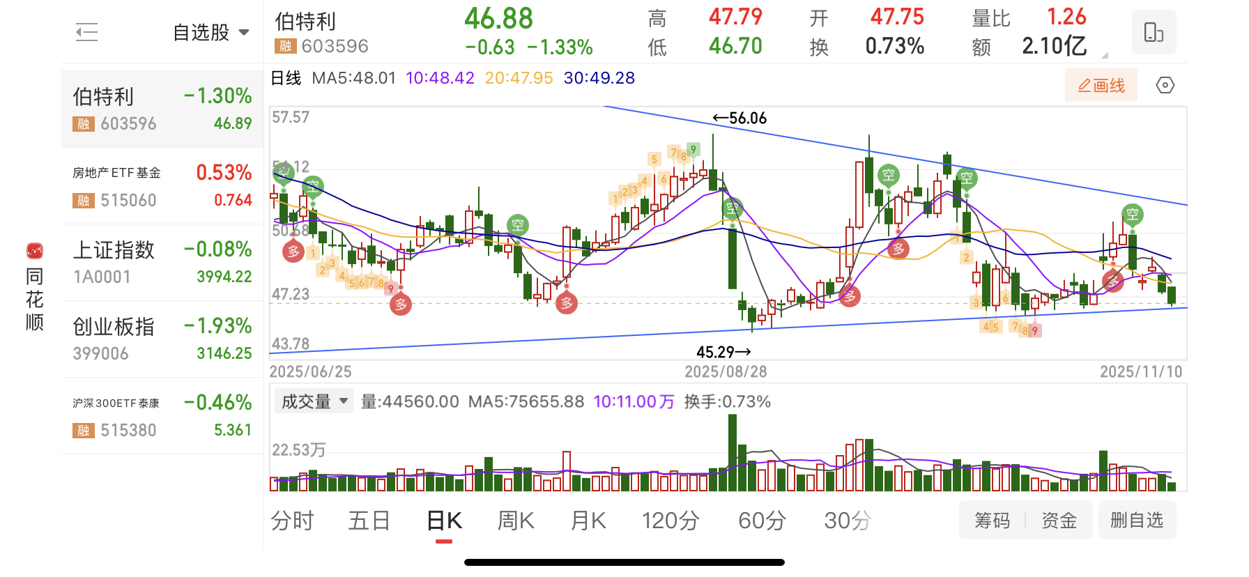 $伯特利(SH603596)$ #强势机会# 46.6强支撑,少量参与