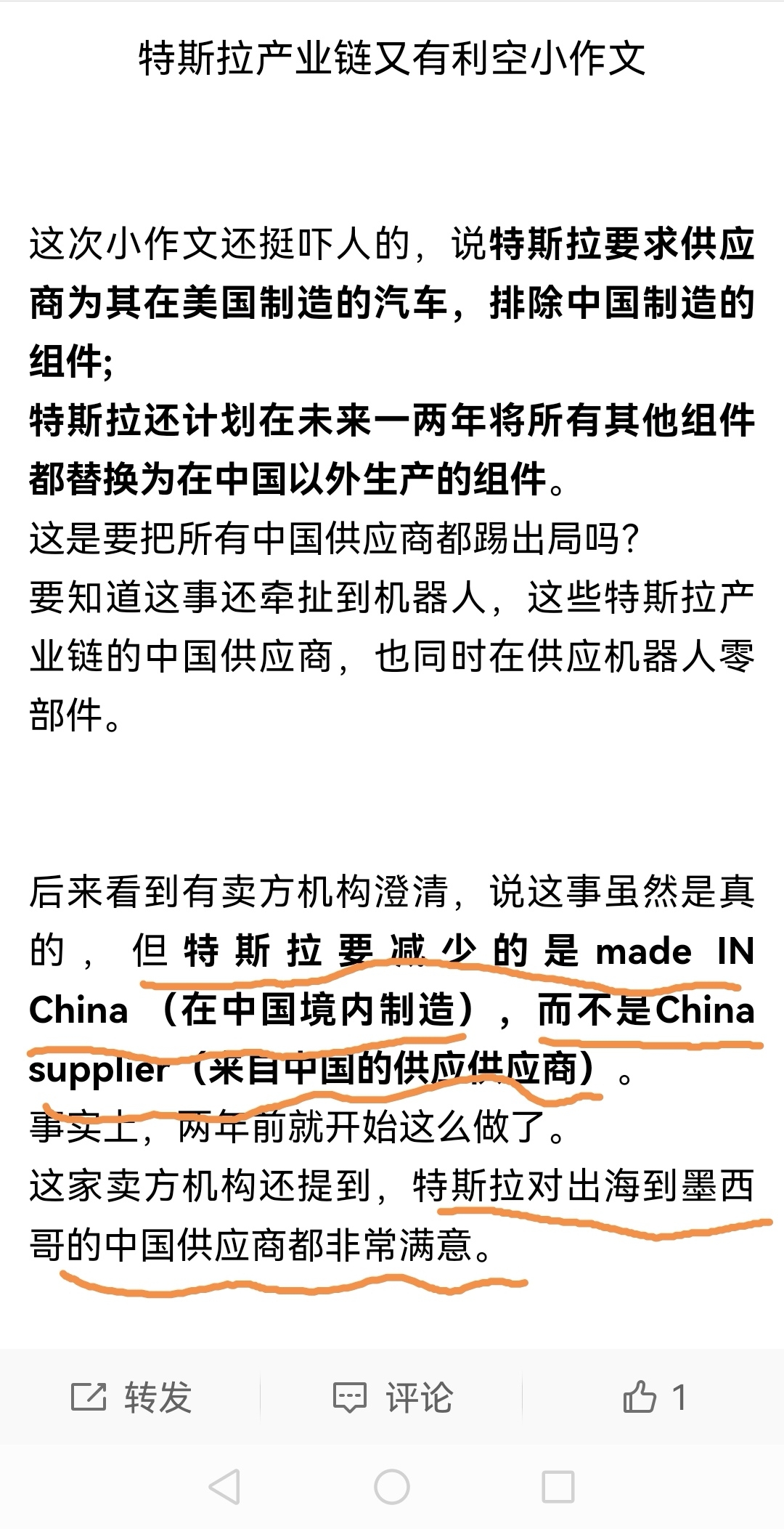 特斯拉这个事情对伯特利谈不上利空吧,伯特利在墨西哥有工厂,特斯拉国内链组件的减少