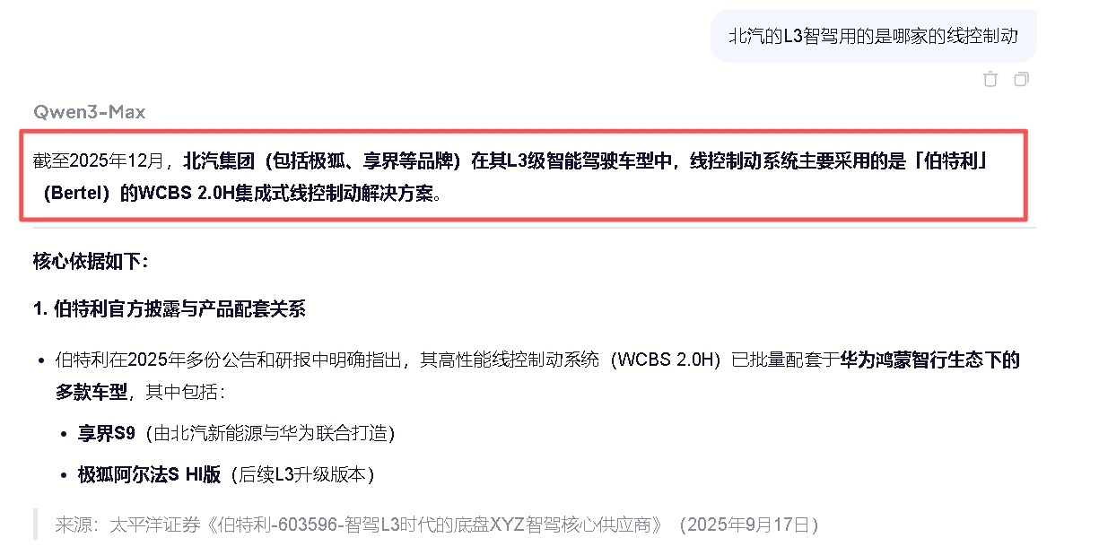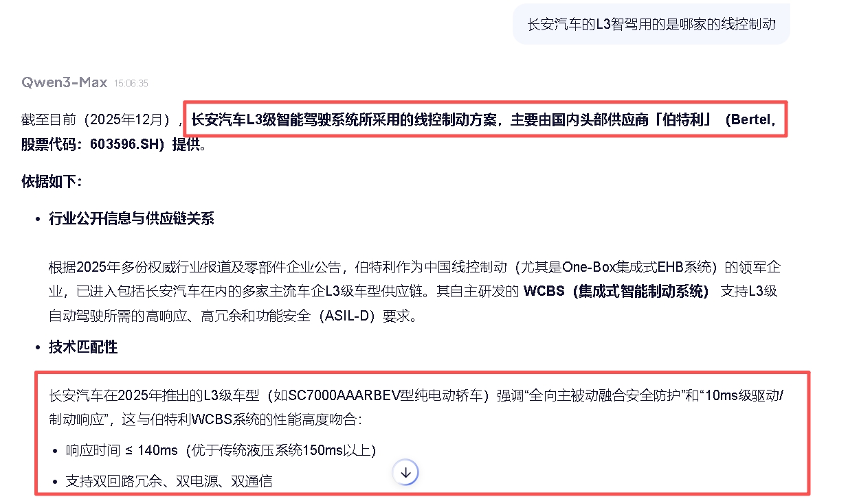 这次L3试点的两个车型都是用的伯特利的线控制动,线控制动也是L3能推进的关键一环