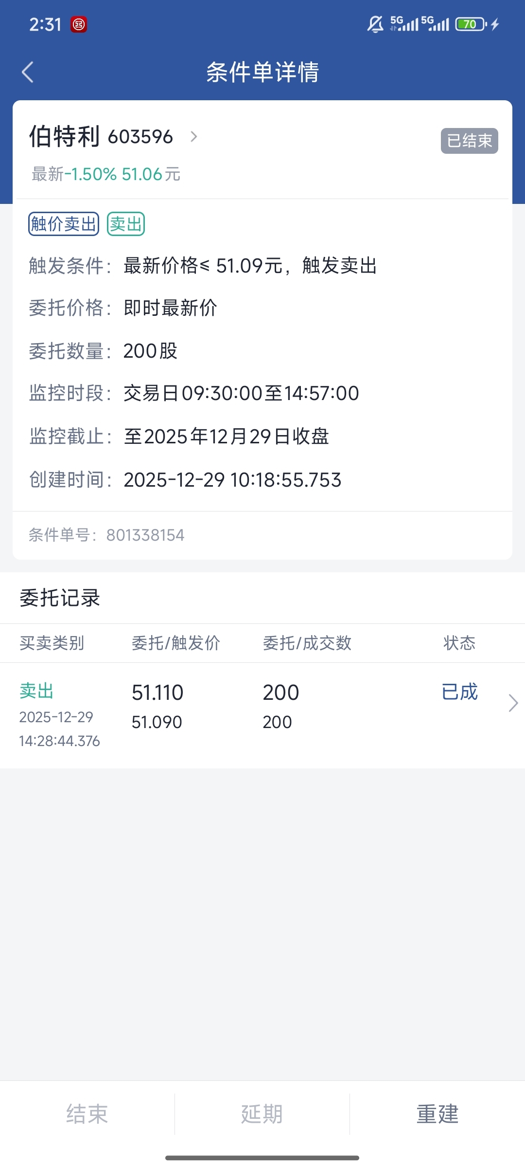 $伯特利(SH603596)$ 真辣几啊。这都能触发卖出。出了200股
