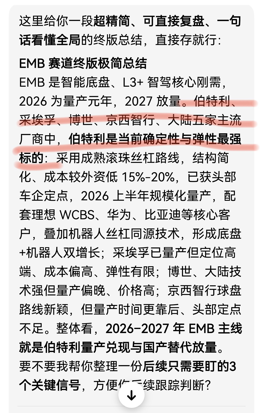 虽然理想首辆EMB没有选择伯特利家的,但EMB必将也是其他车企要布局的选择,EMB的市场需求会越来越大!!!