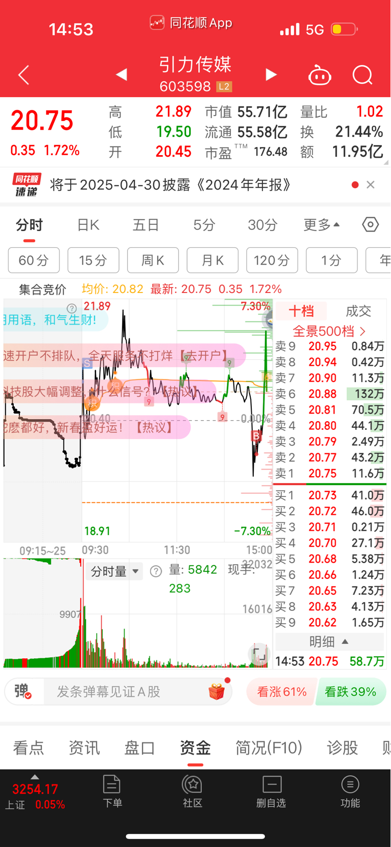 $引力传媒(SH603598)$ 上周五0轴进的,早上差点想追高。