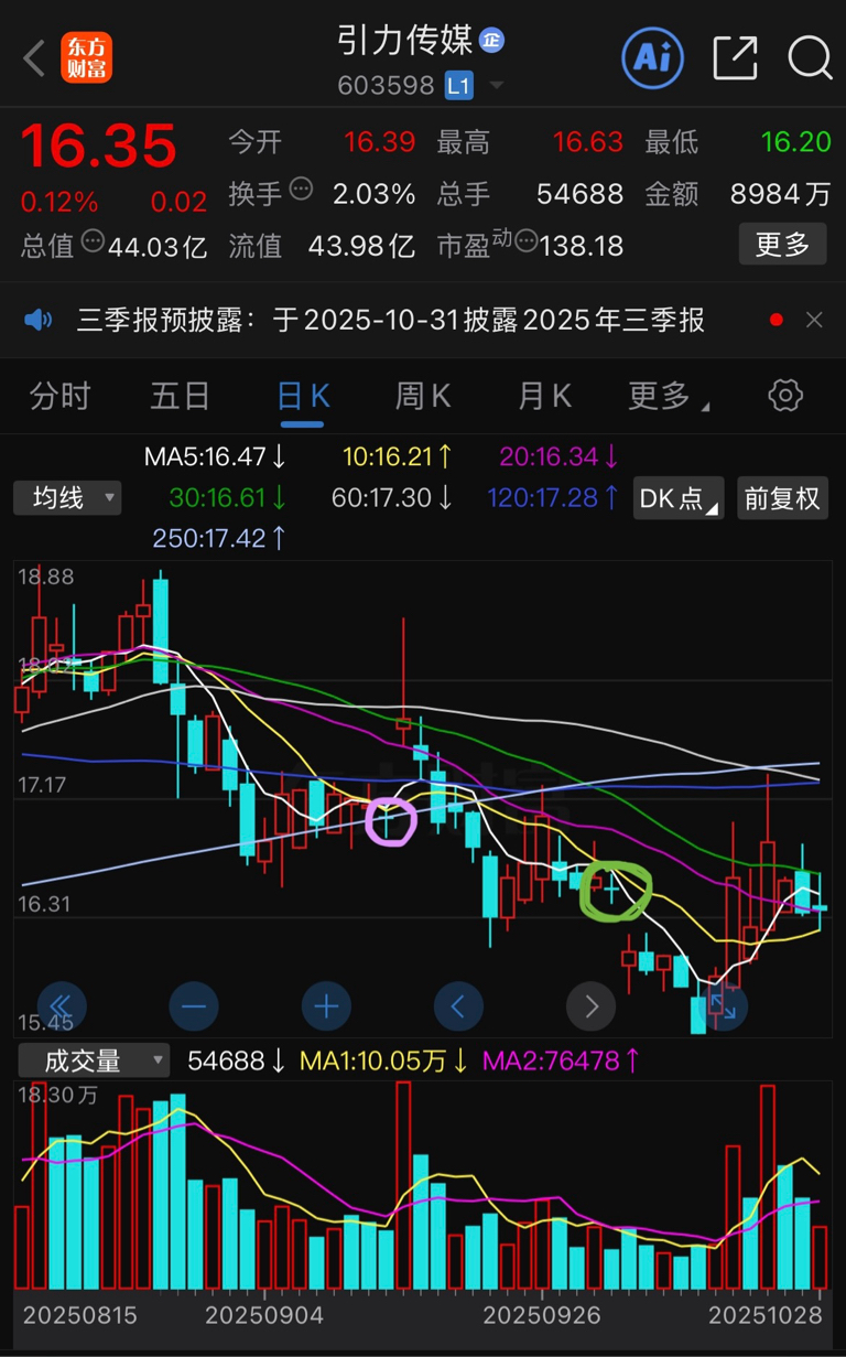 $引力传媒(SH603598)$ 大家说说看,今天这颗十字星像红圈里的那颗还是像绿圈里的那颗?