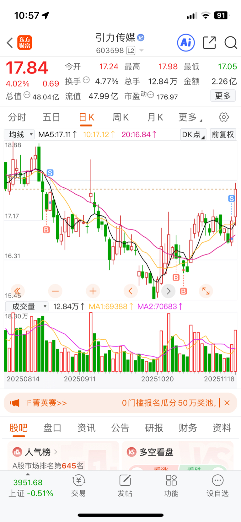 $引力传媒(SH603598)$ 你就看上我这三瓜两枣?服了