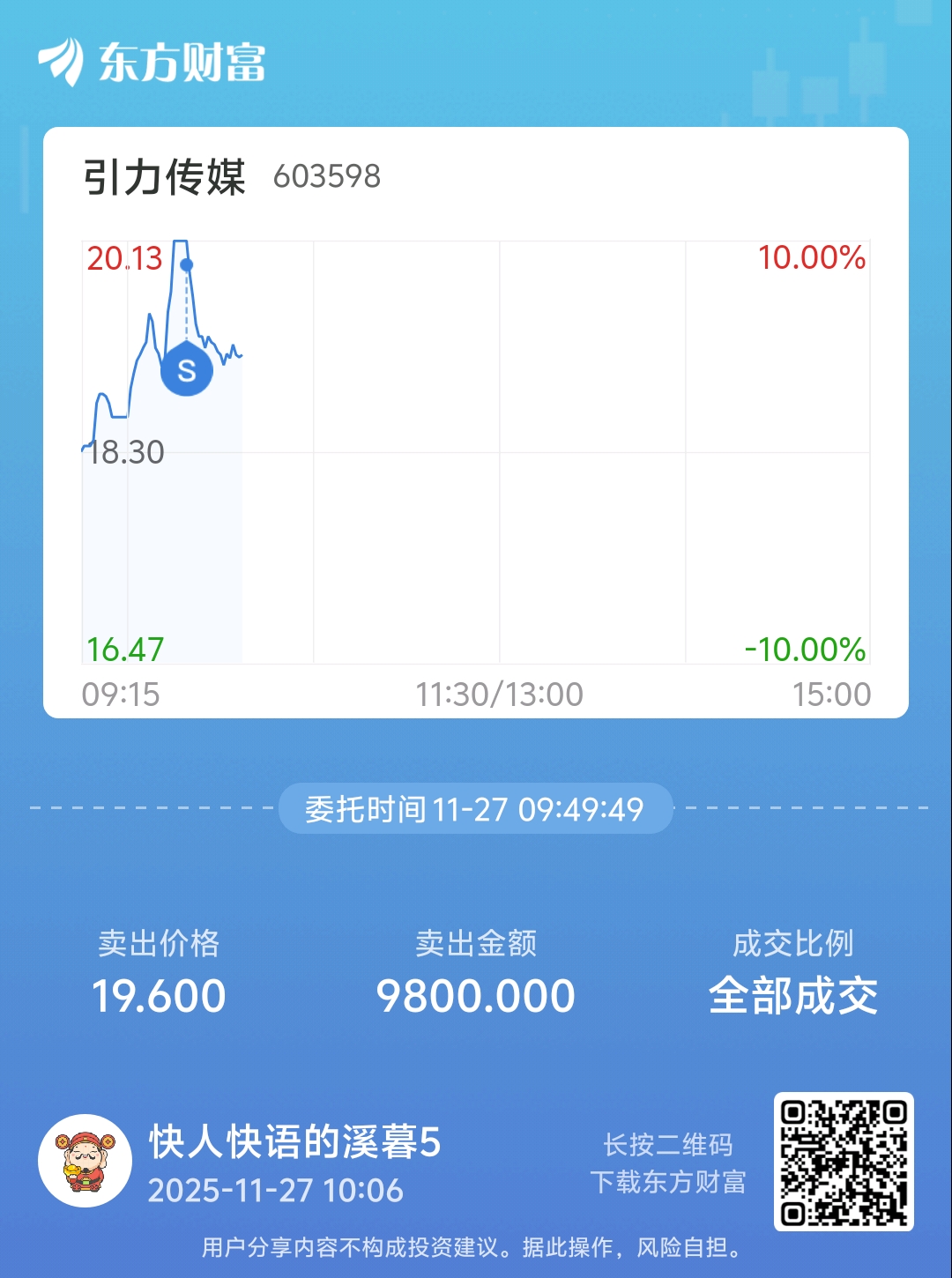 温馨提示: 1.根据《证券法》规定,禁止编造、传播虚假信息或者误导性信息,扰乱证券市场;2.用户在本社区发表的所有资料、言论等仅代表个人观点,与本网站立场无关,不对您构成任何投资建议。用户应基于自己的独立判断,自行决定证券投资并承担相应风险。《东方财富社区管理规定》