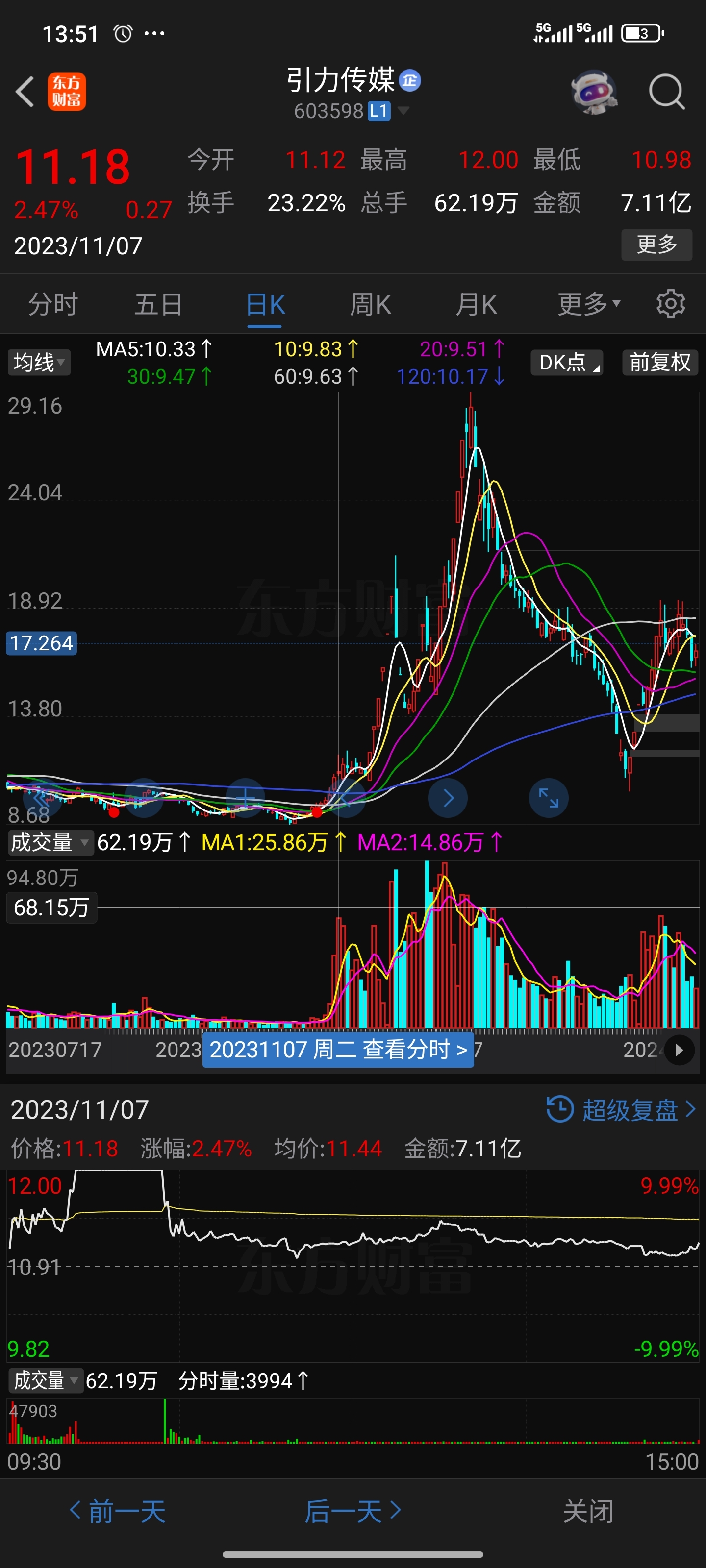 $引力传媒(SH603598)$ 复制23年11月7日的走势吗?
