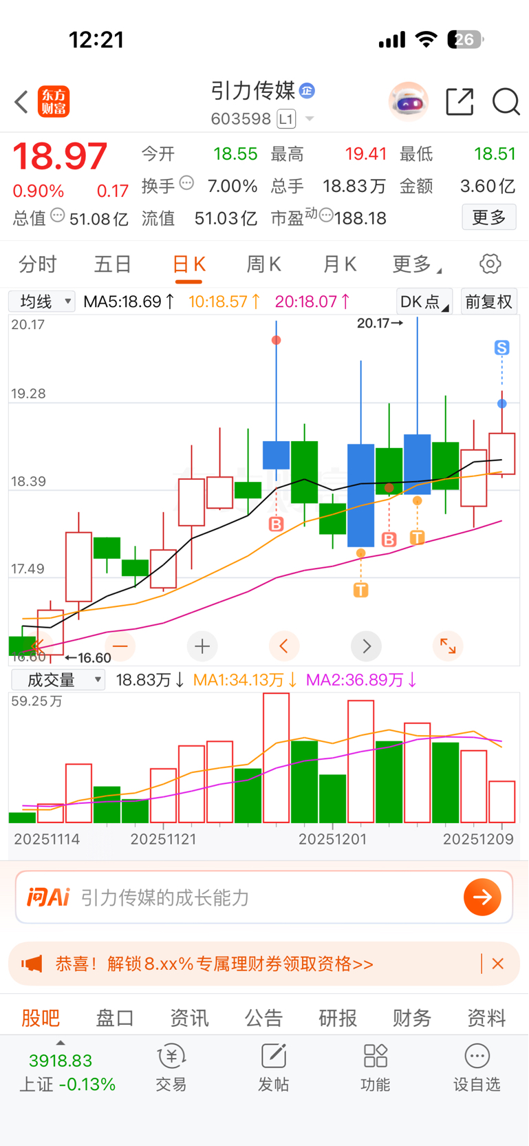 $引力传媒(SH603598)$ 20元打板进的,几经折腾,赚2个点走人