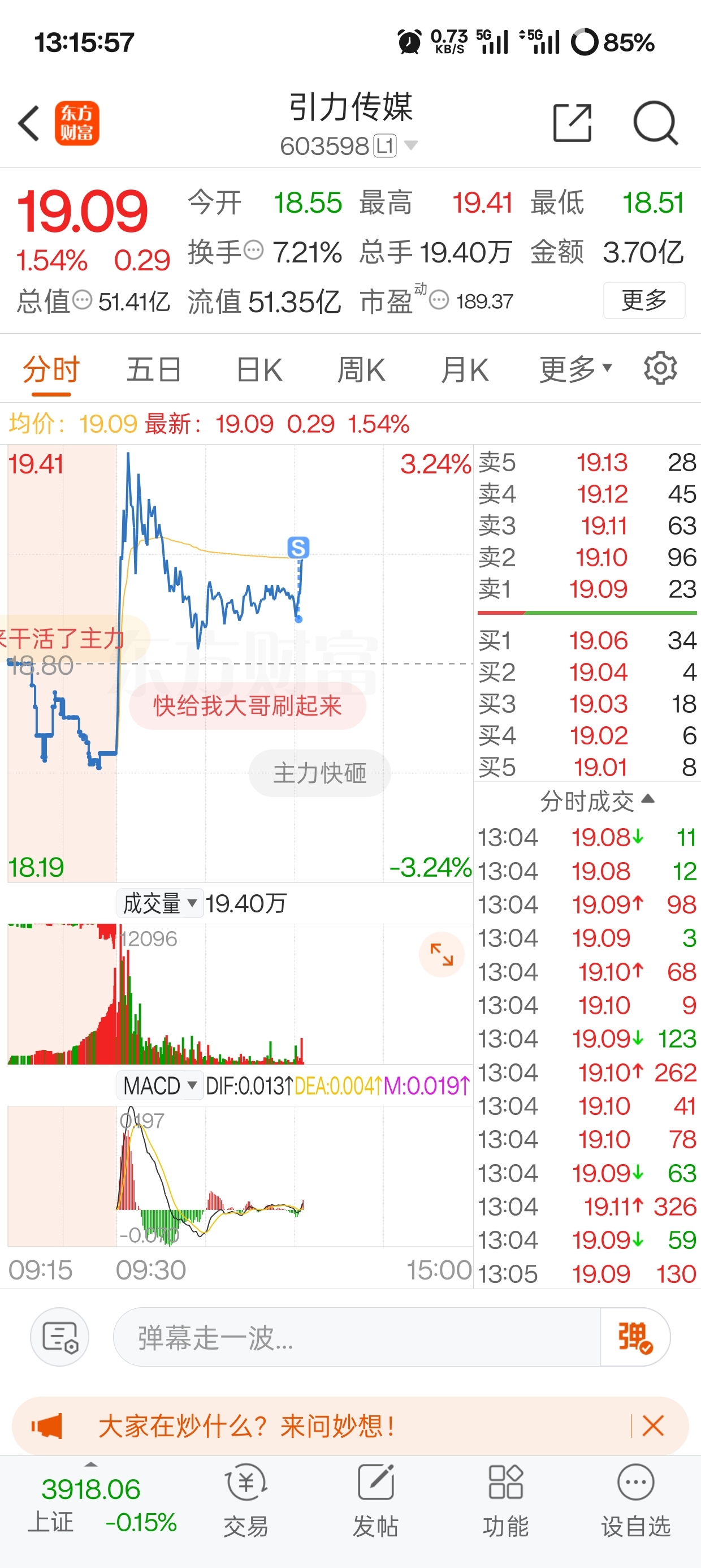 $引力传媒(SH603598)$ 涨停了就要感谢我,主力缺我这几十个