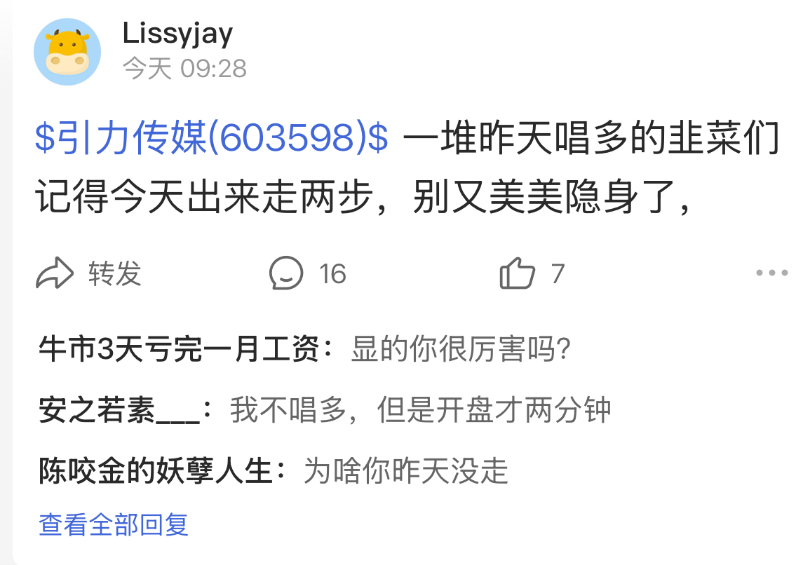 $引力传媒(SH603598)$ 只要这只苍蝇还没走,这波行情就还没完