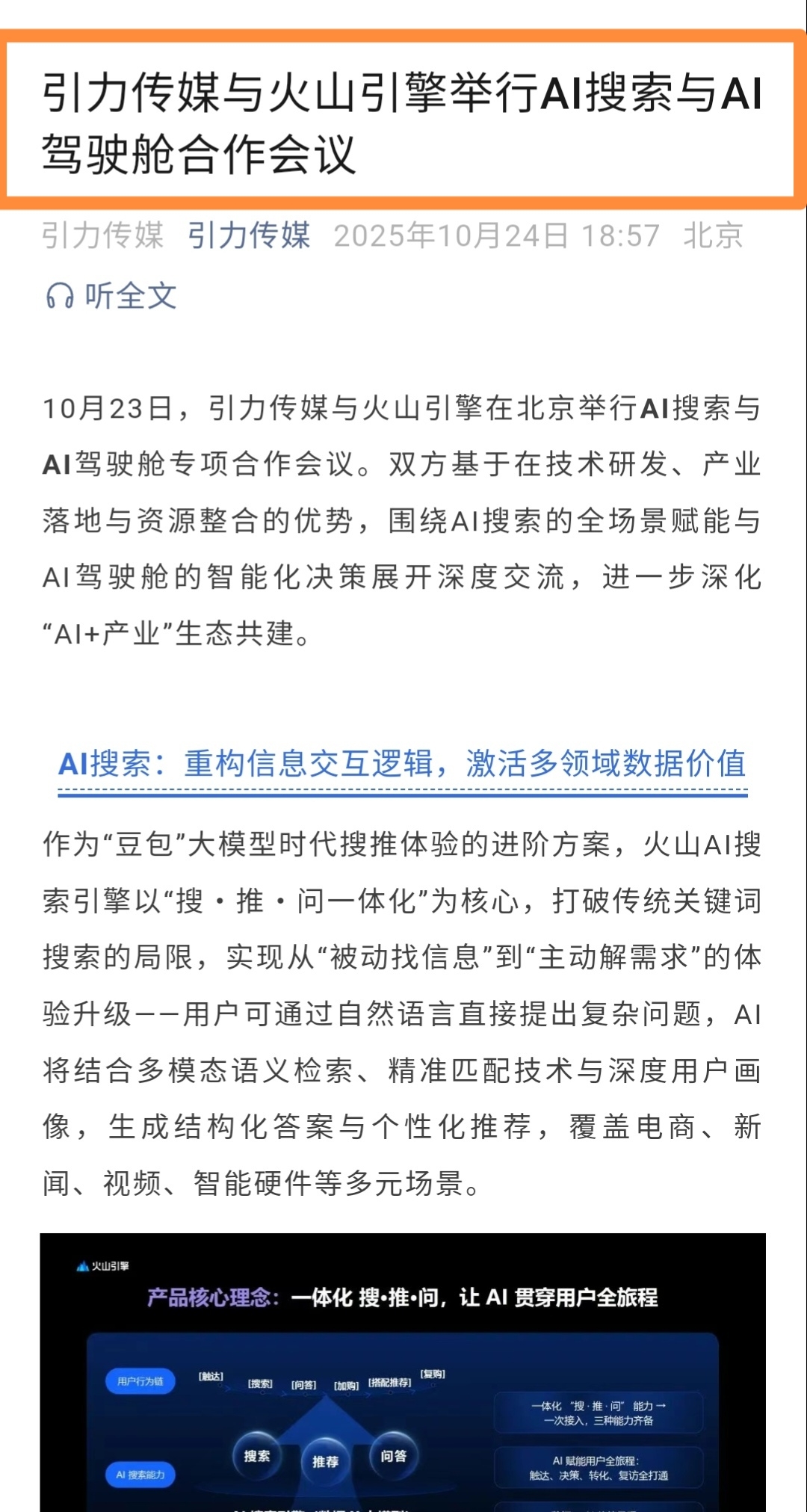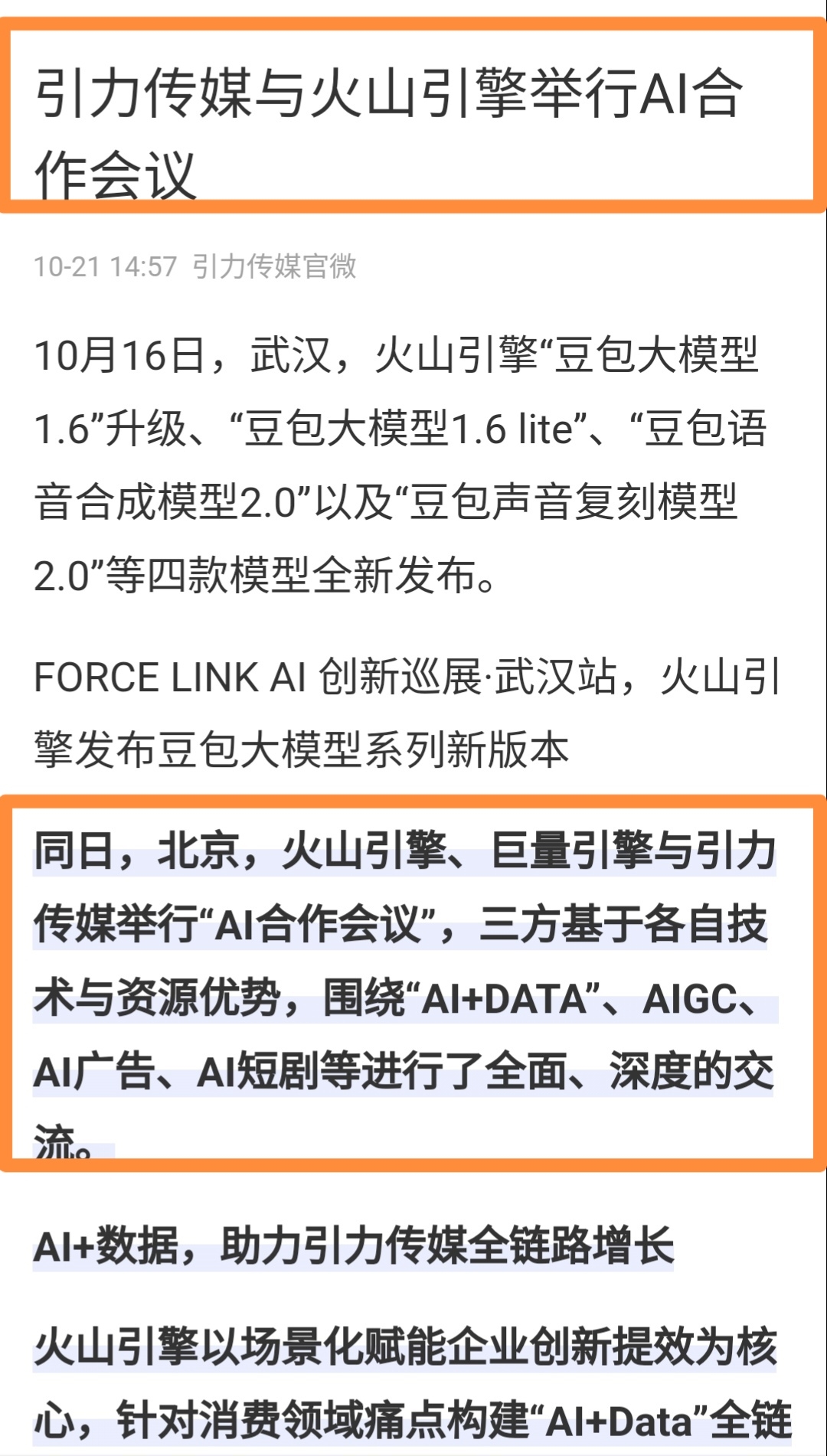 $引力传媒(SH603598)$ 火山引擎大会下周,引力传媒能否引爆