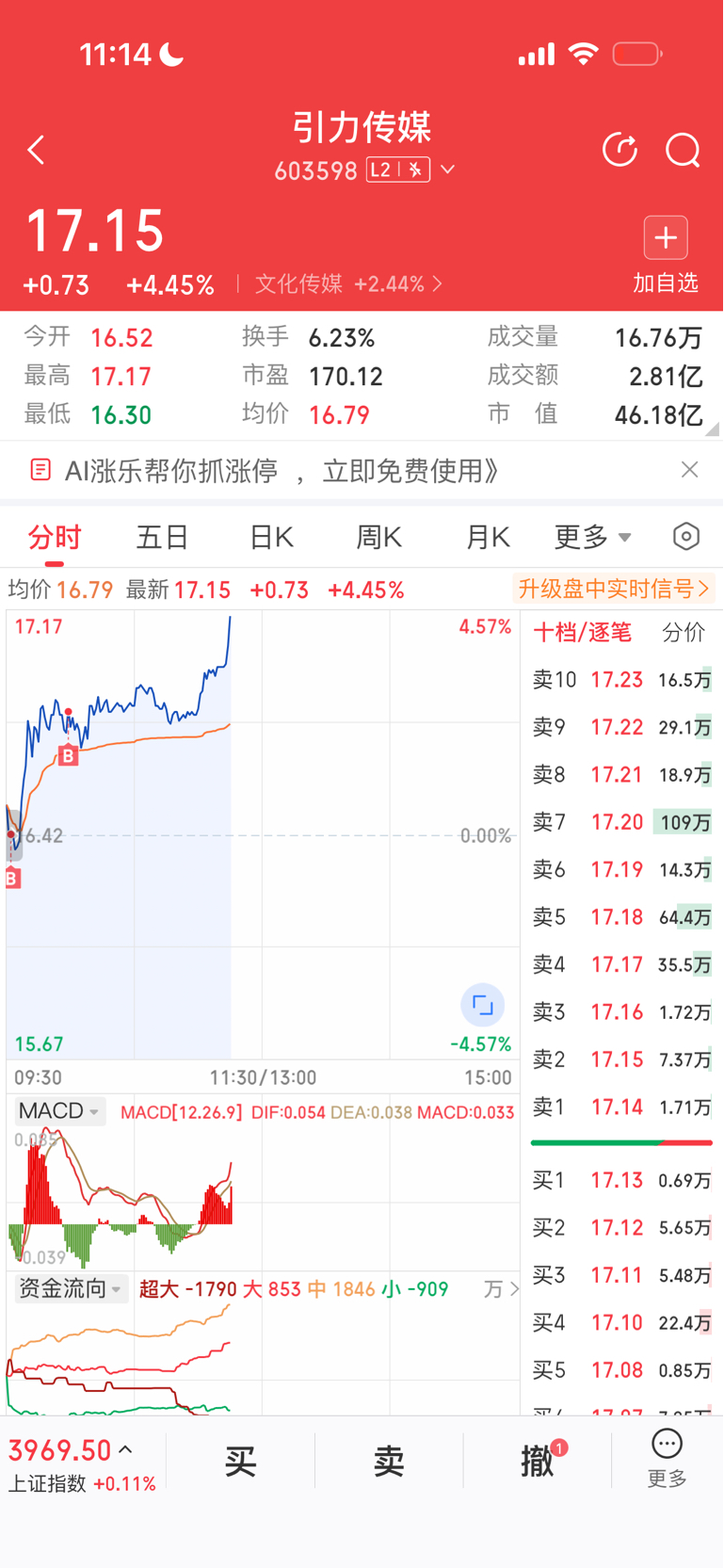 $引力传媒(SH603598)$ 重仓了还亏4个点,希望回本呢