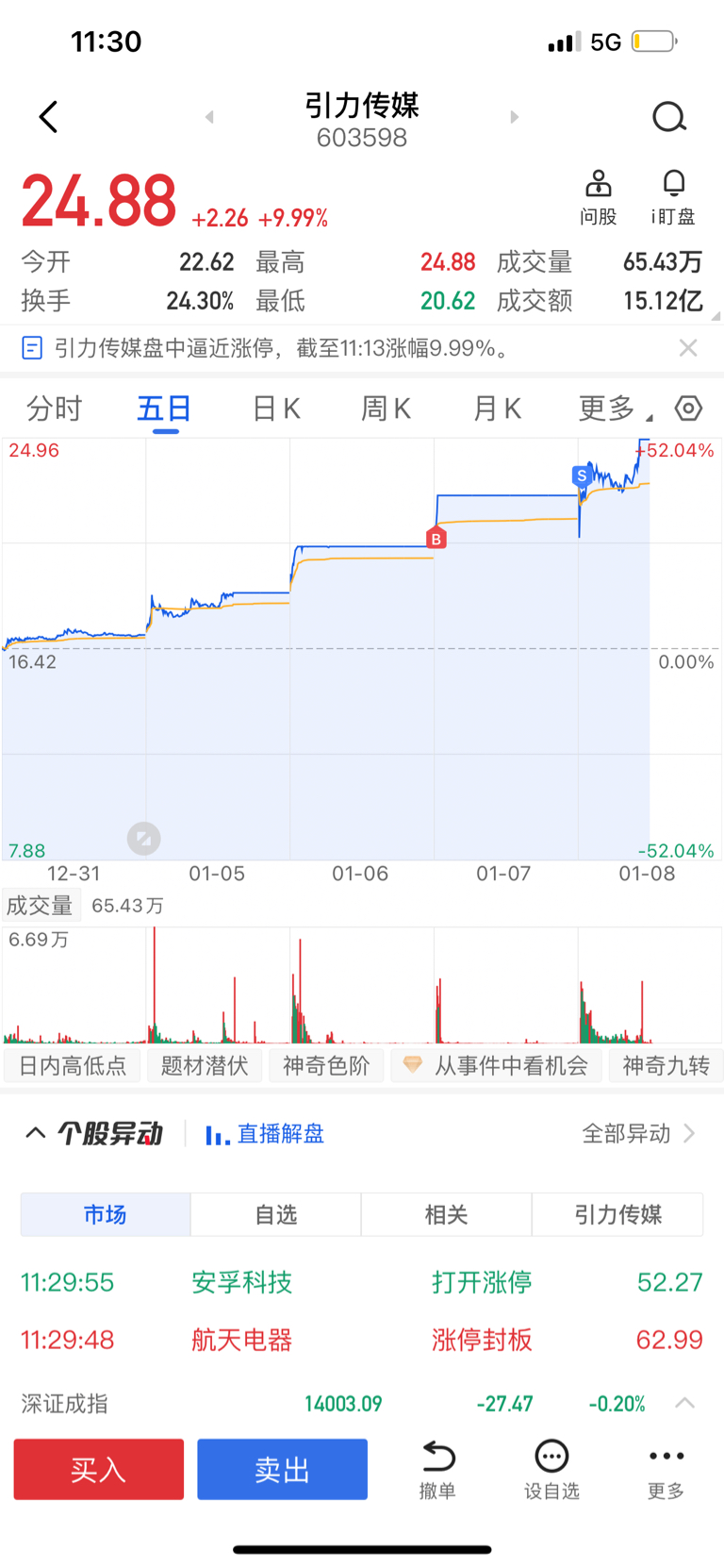 $引力传媒(SH603598)$ 被洗了