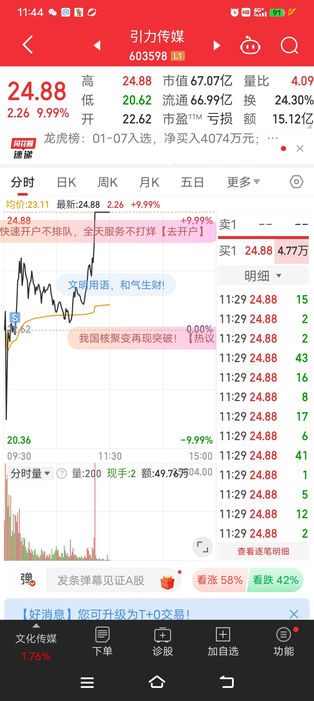 $引力传媒(SH603598)$ 菜鸡只能目送了