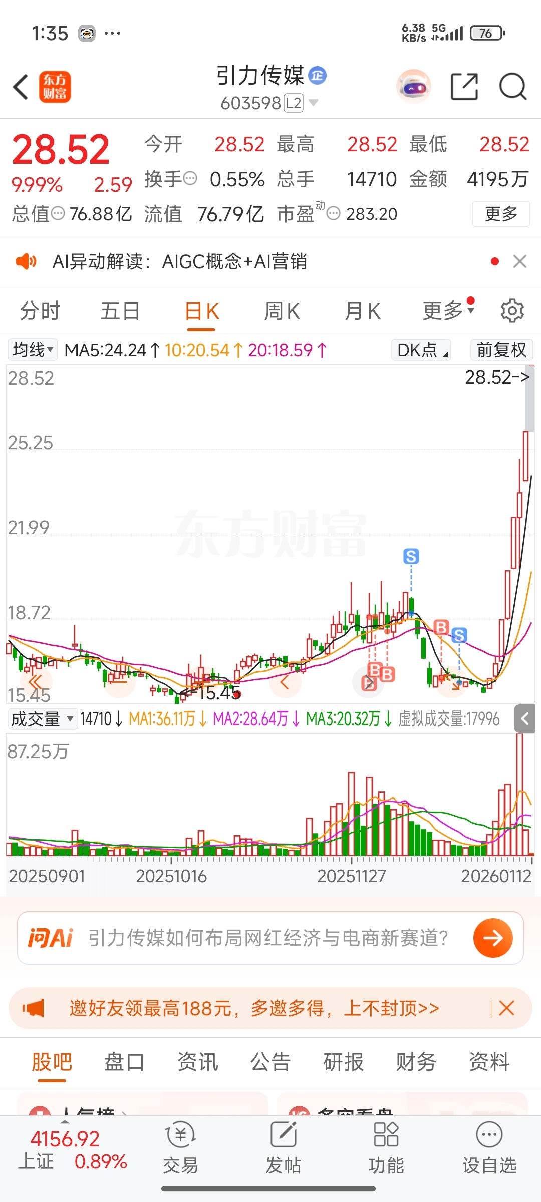 $引力传媒(SH603598)$ 你真是我活爹啊