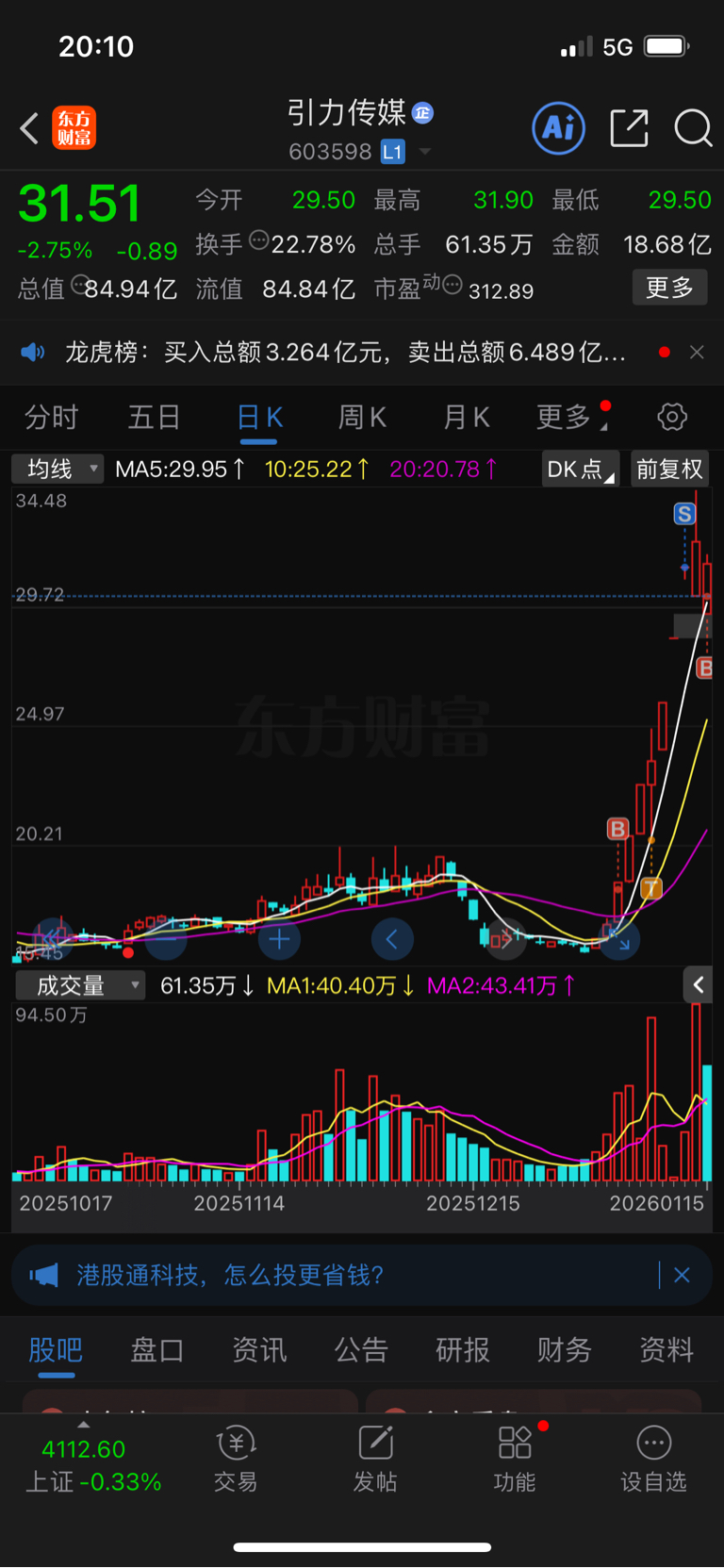 $引力传媒(SH603598)$ 前面吃了几个板,今天又追进来了,坚信你是AI应用龙头!