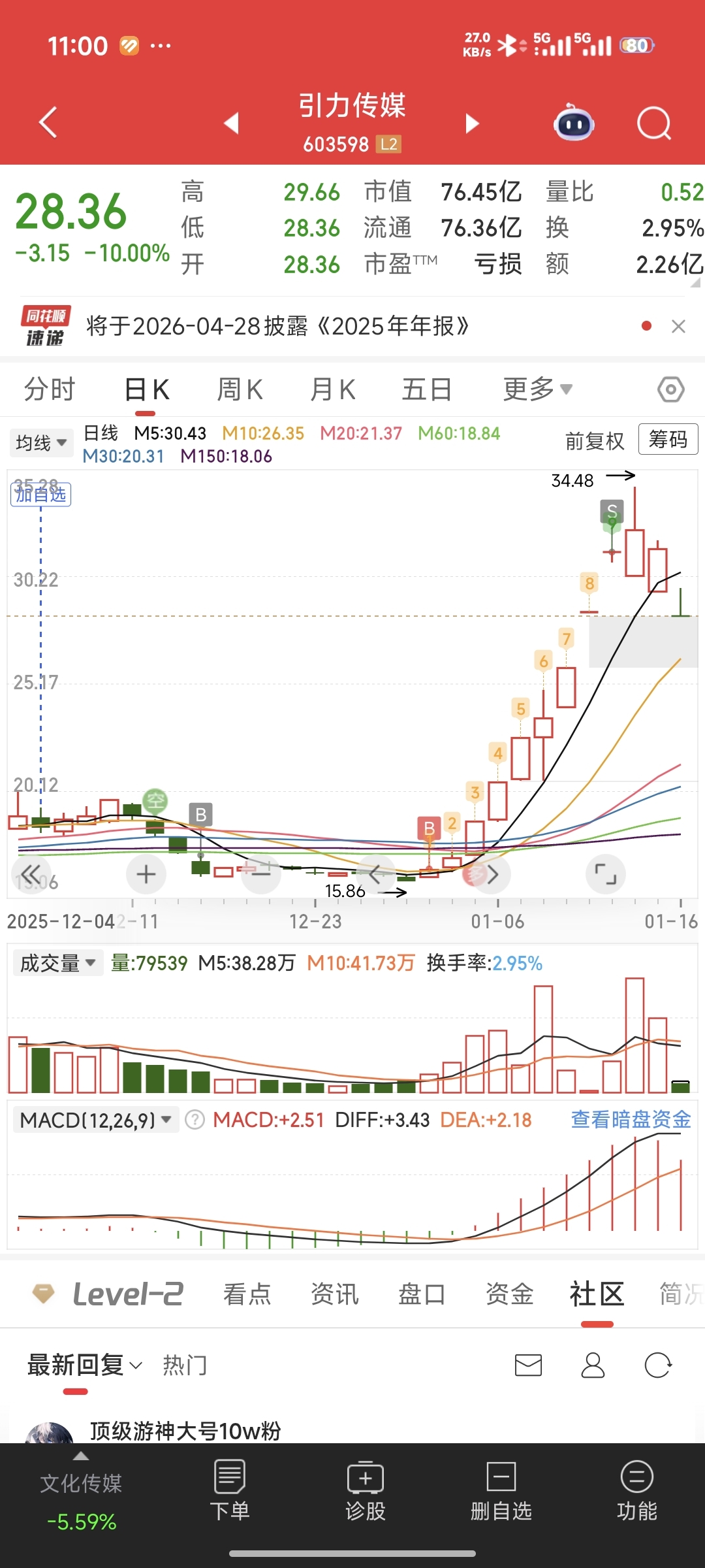 $引力传媒(SH603598)$ 我这哈哈哈