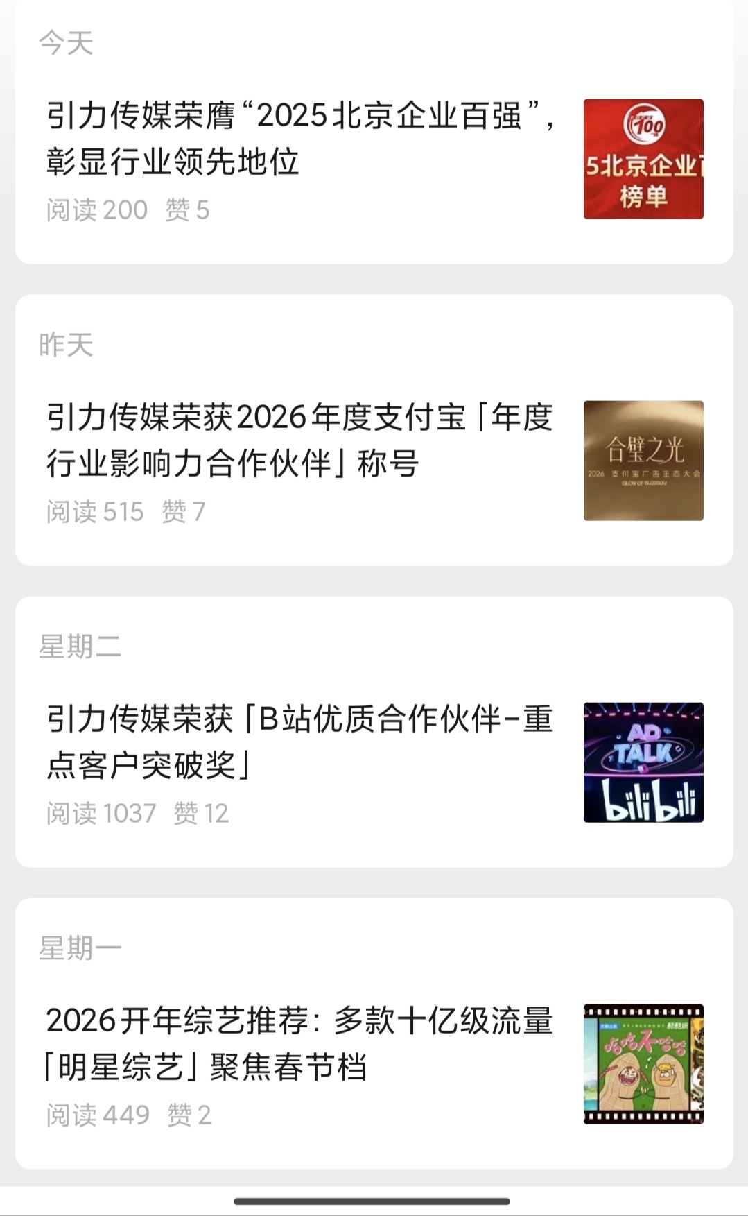 $引力传媒(SH603598)$ 公司每天都有好消息