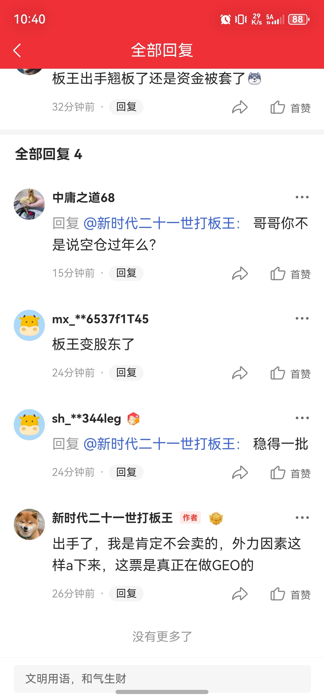 温馨提示: 1.根据《证券法》规定,禁止编造、传播虚假信息或者误导性信息,扰乱证券市场;2.用户在本社区发表的所有资料、言论等仅代表个人观点,与本网站立场无关,不对您构成任何投资建议。用户应基于自己的独立判断,自行决定证券投资并承担相应风险。《东方财富社区管理规定》