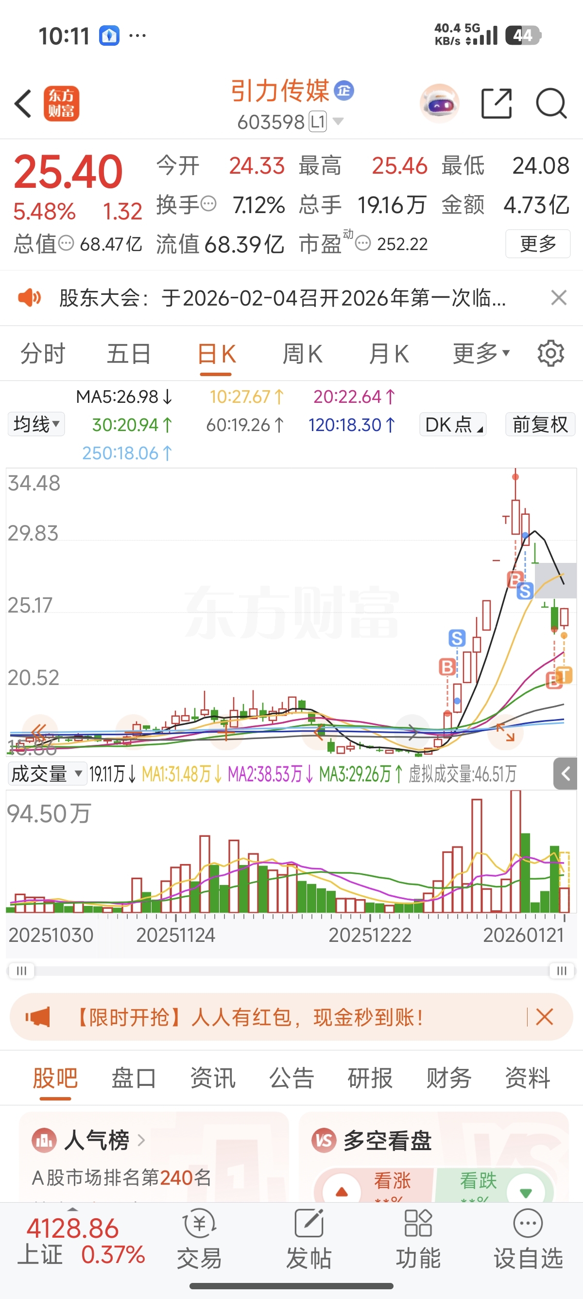$引力传媒(SH603598)$ 之前没吃到的时候这波全部吃回来