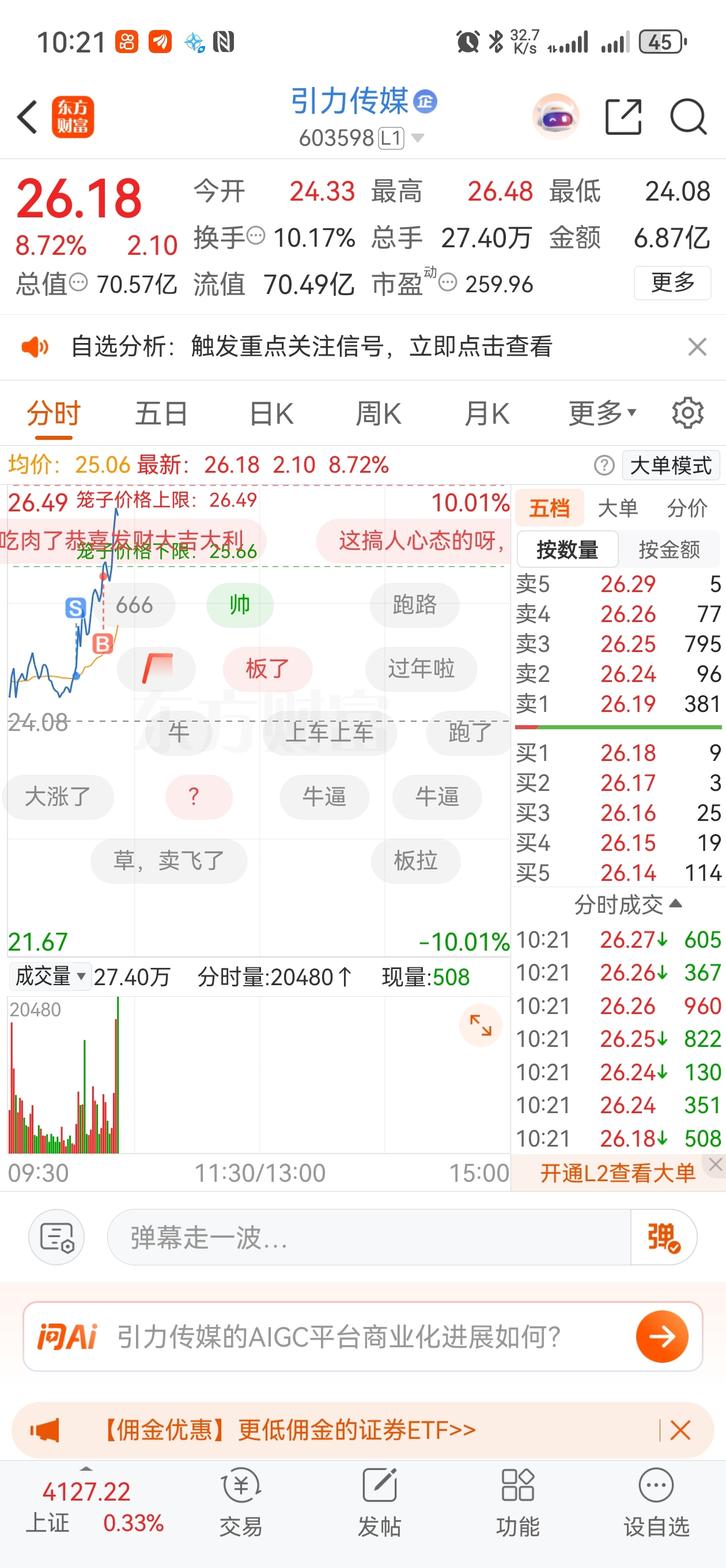 $引力传媒(SH603598)$ 全体目光向我看齐,我是个