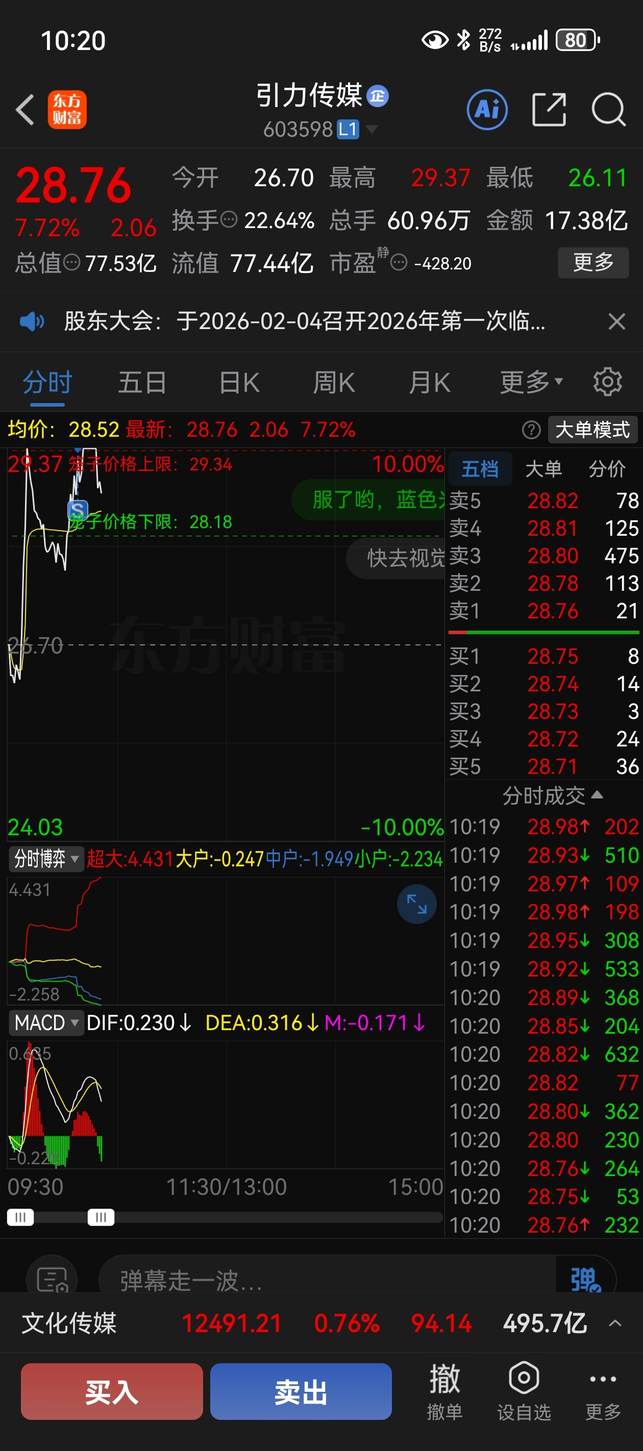 $引力传媒(SH603598)$ 我已经跑路了 你们加油