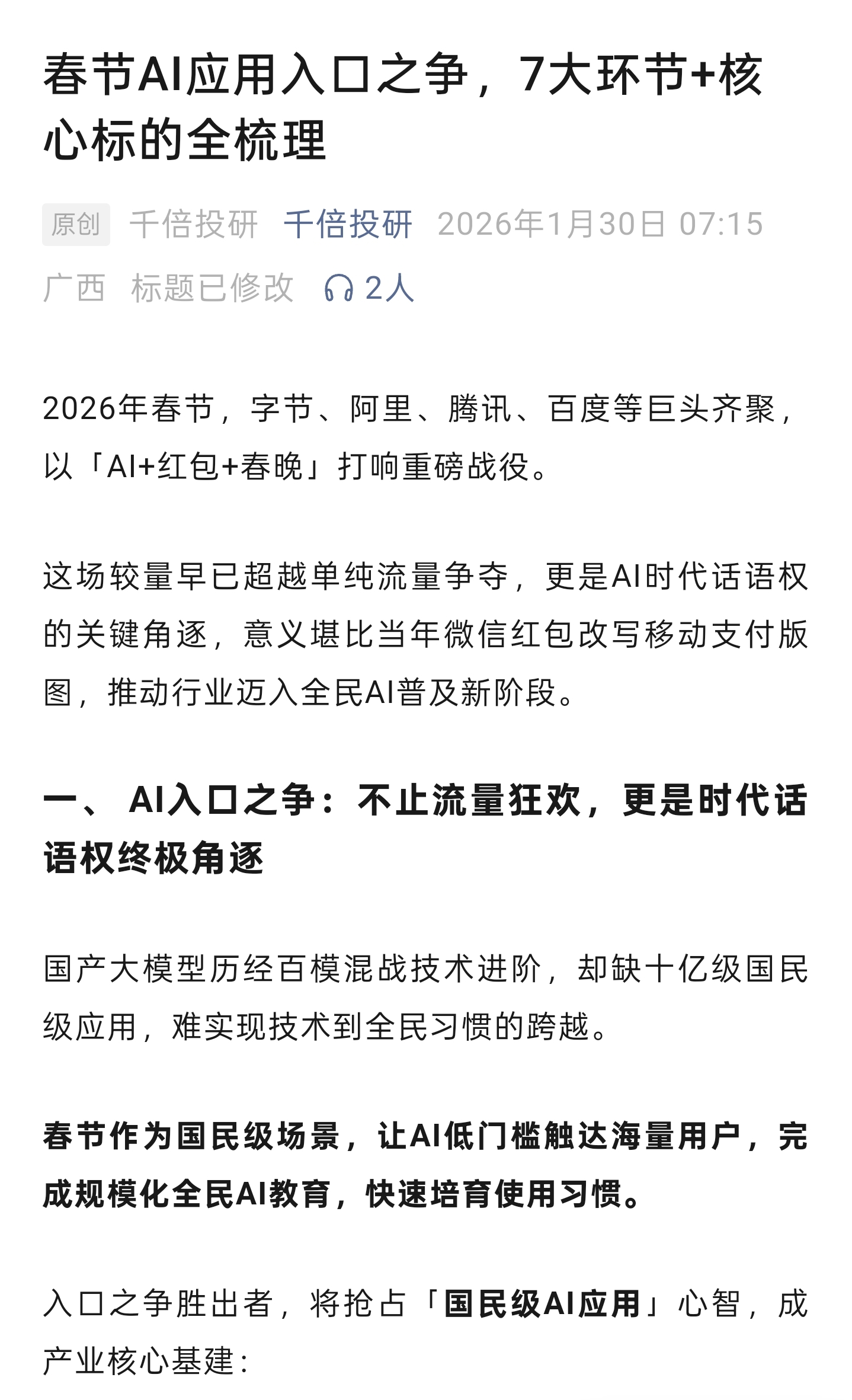 AI应用下周迎来大行情!!春节AI入口之争已开始,大厂抢流量开始撒钱模式。我梳理