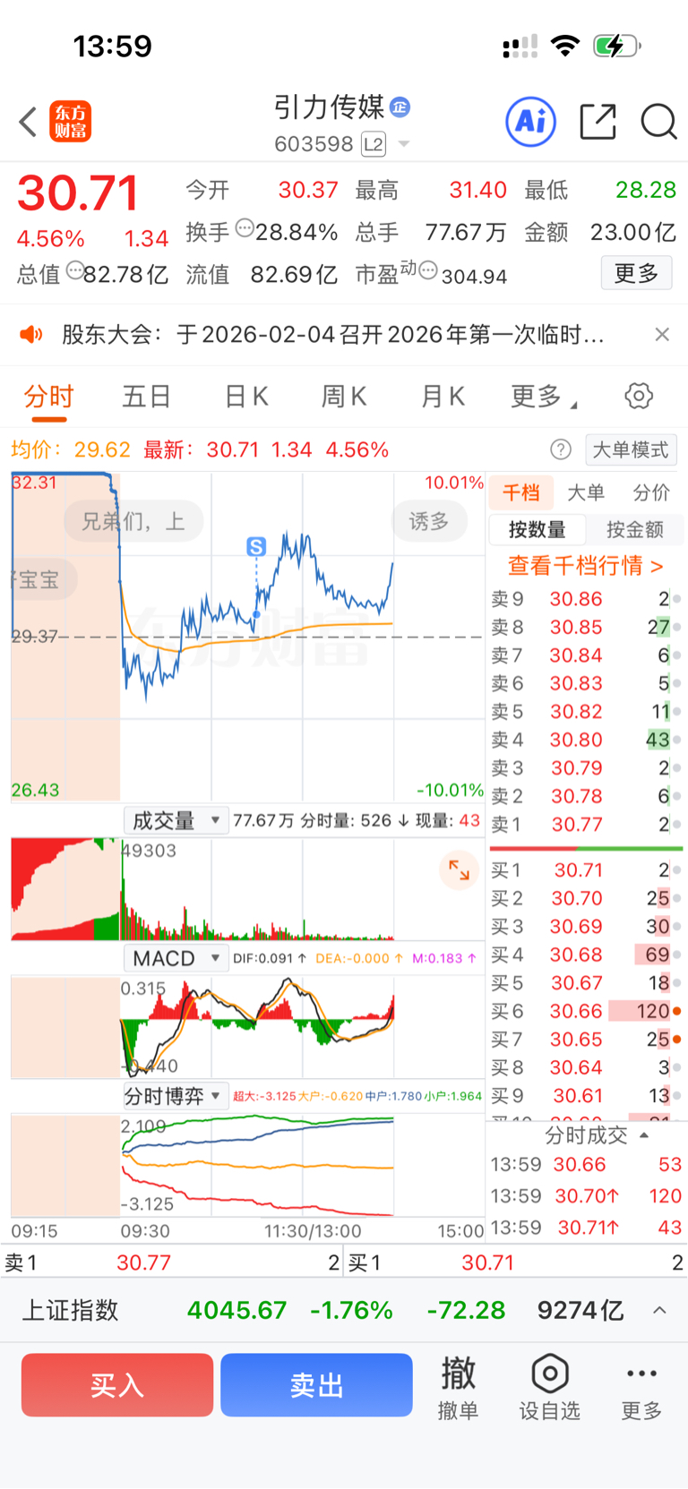 $引力传媒(SH603598)$ 高手买入龙头,超级高手卖出龙头