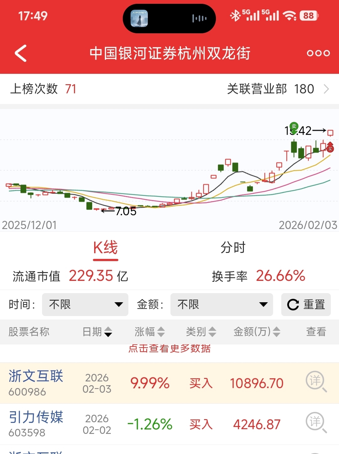 $引力传媒(SH603598)$ $天地在线(SZ002995)$ $浙文互联(SH600986)$ 中国银河杭州双龙街平铺AI应用。这是个大佬新席位。昨天引力传媒,今天浙文互联。