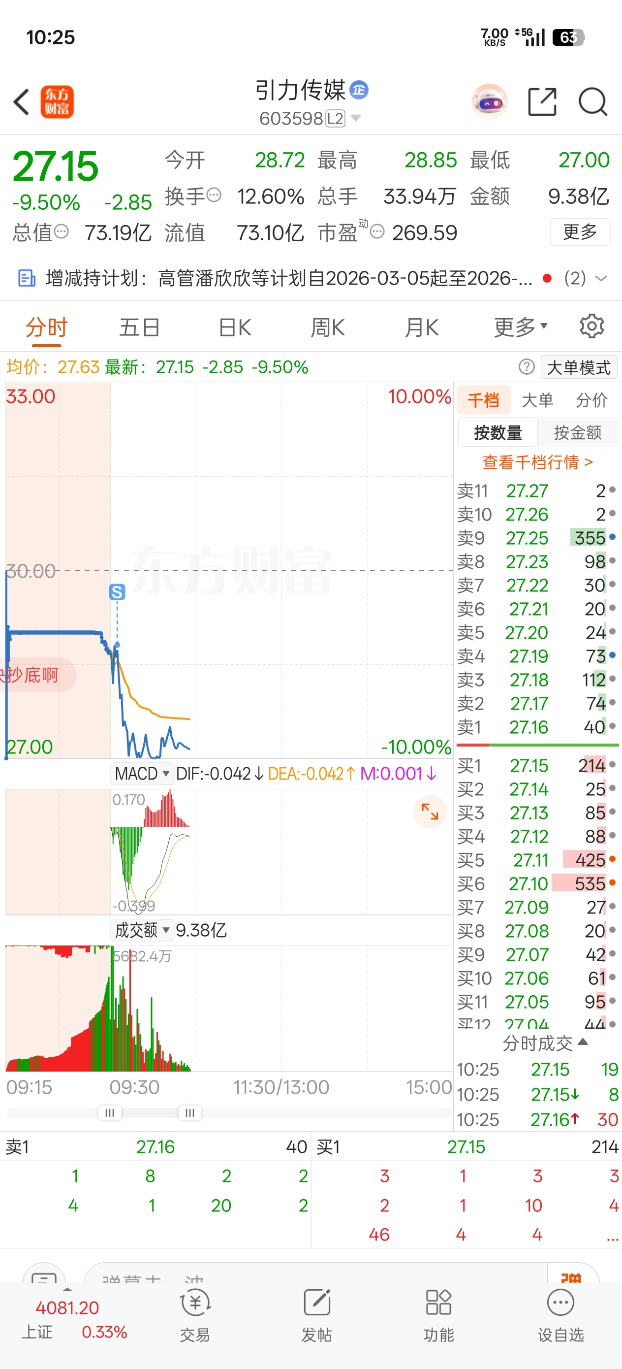 $引力传媒(SH603598)$ 走了走了,涨点就减持,妈的