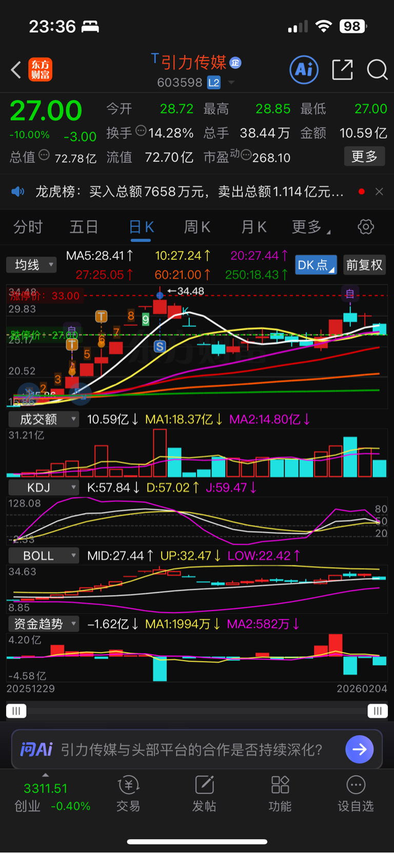 $引力传媒(SH603598)$ 回头望去才开始相信运气