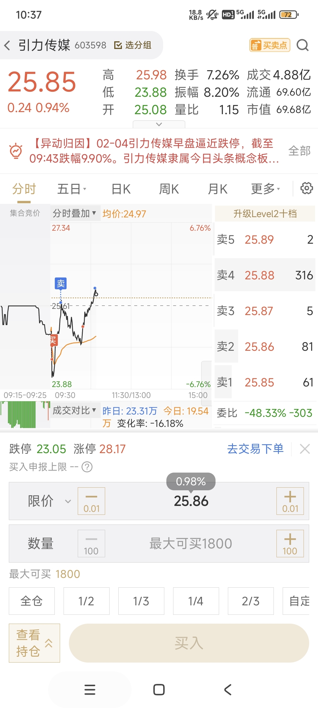 $引力传媒(SH603598)$ t回本了