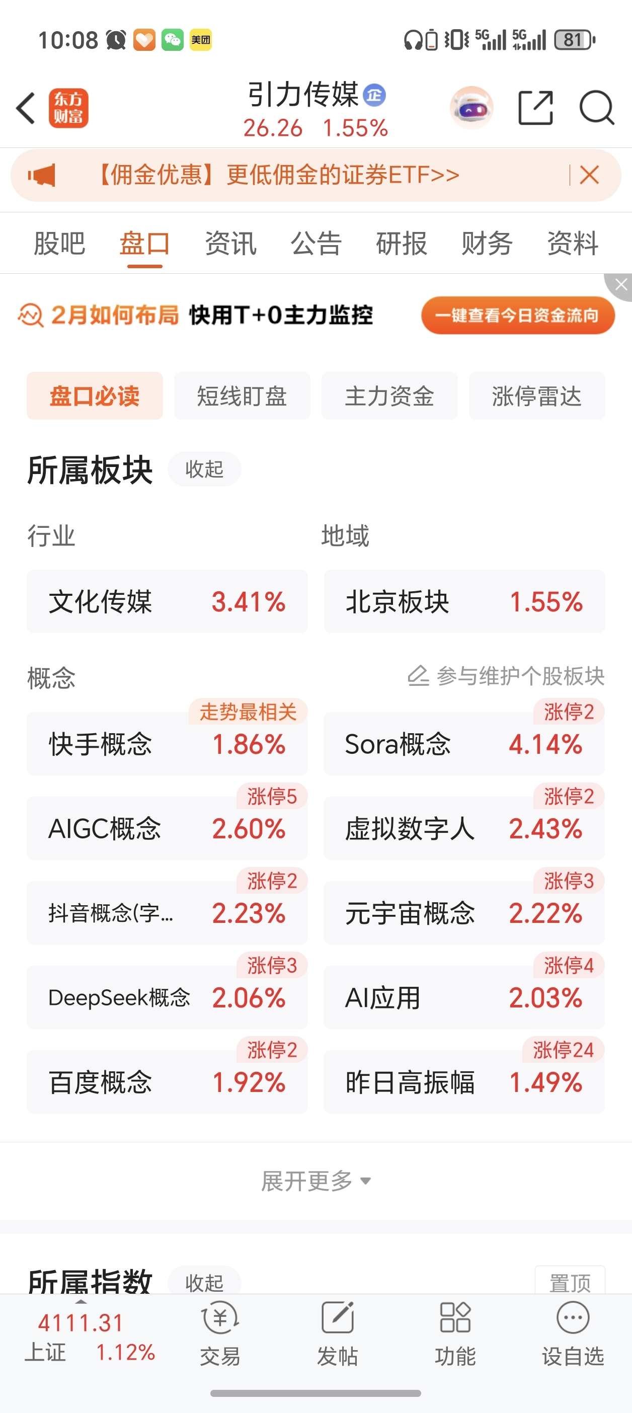 $引力传媒(SH603598)$ 蹭的概念倒是都挺好看