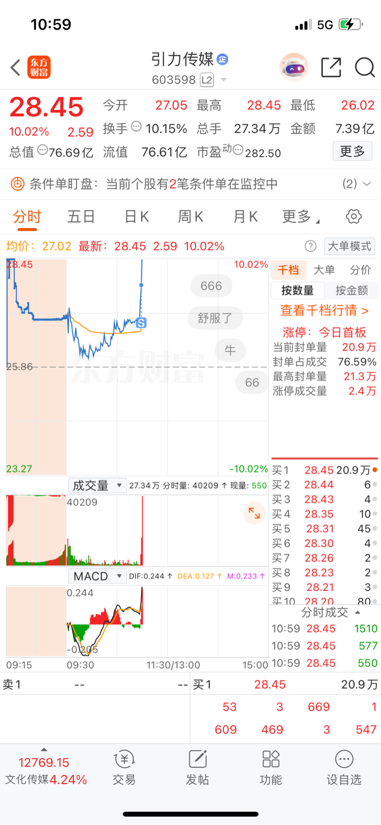 $引力传媒(SH603598)$ 厉害,诶