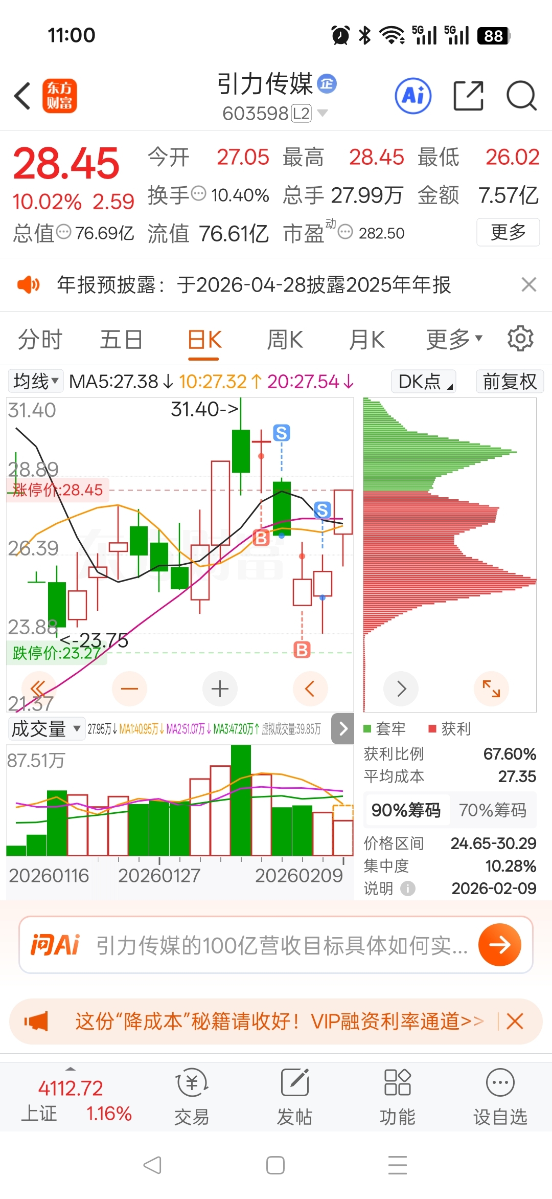 $引力传媒(SH603598)$ 纯纯韭菜