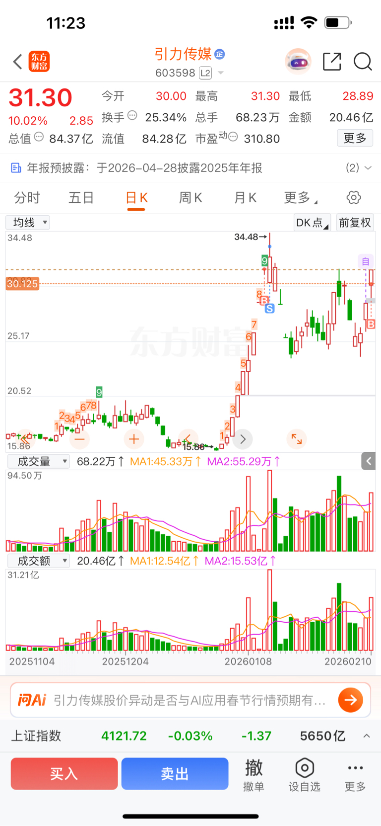 $引力传媒(SH603598)$ 这波有没有穿越龙的气势,这图形多漂亮