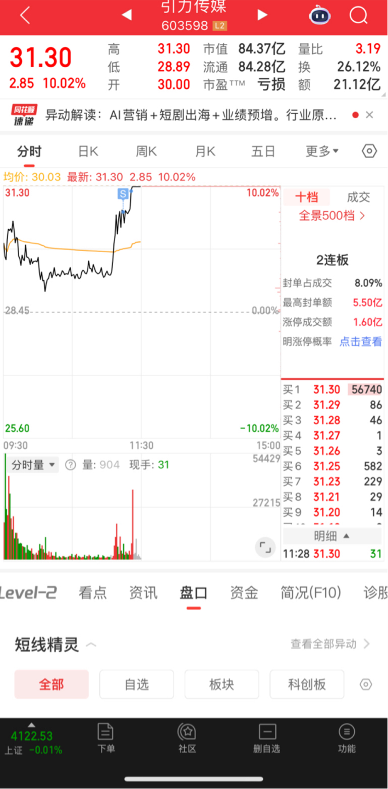 $引力传媒(SH603598)$ 有点辨识度但是不多