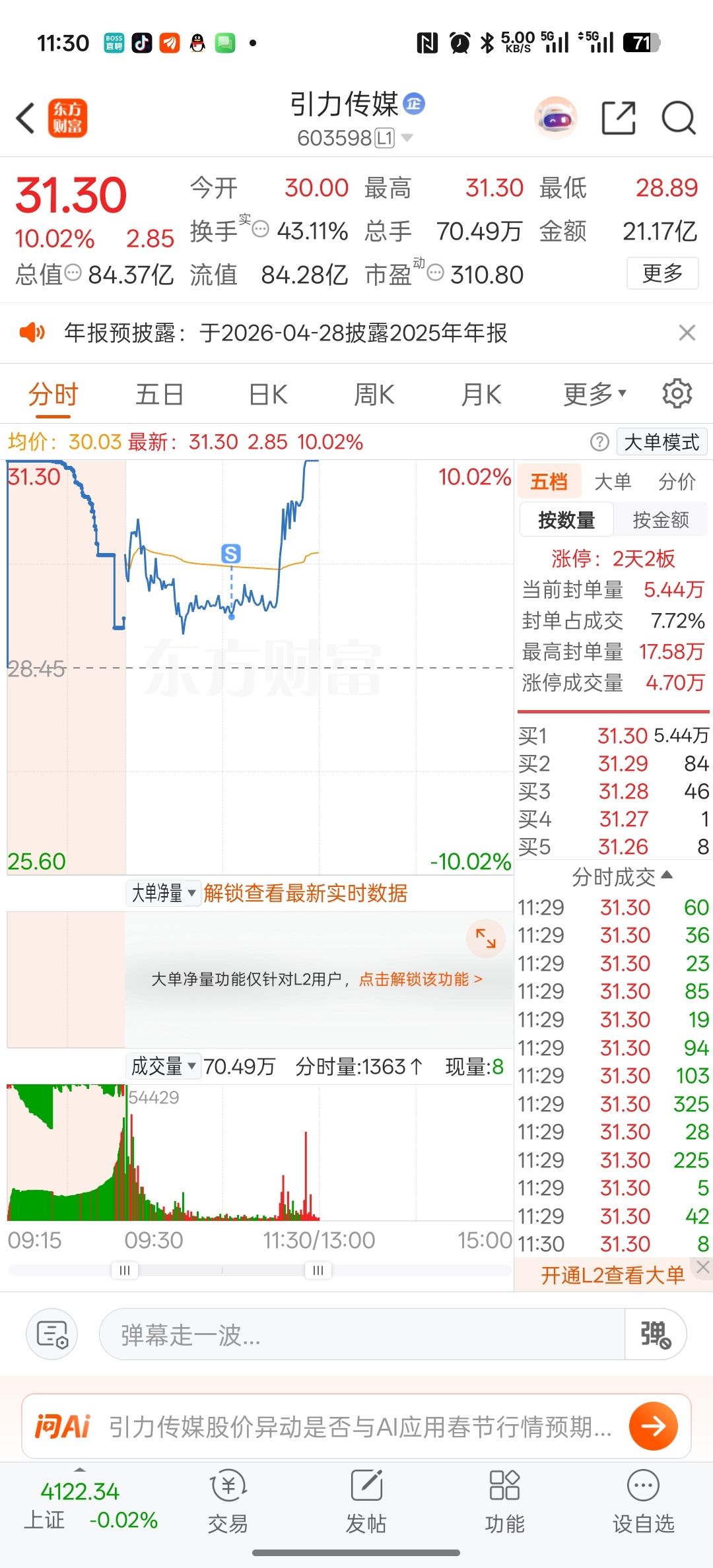 $引力传媒(SH603598)$ 主力: 他终于卖了呜呜呜呜,我可以放心拉了