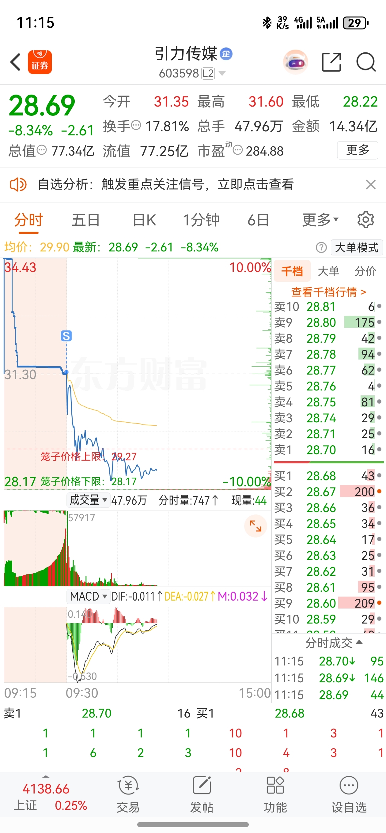 $引力传媒(SH603598)$ 竞价跑了 周五看情况再说