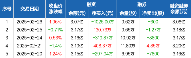 广信股份:融资净偿还1026万元,融资余额3.07亿元(02-26)