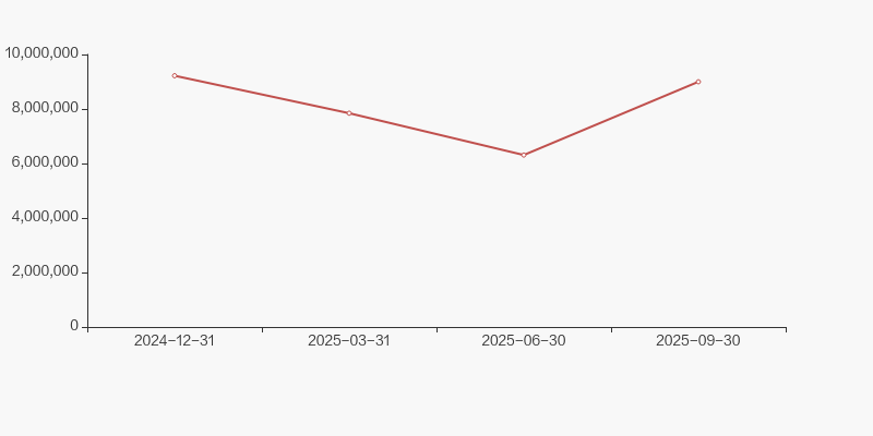 截至2025年9月30日,公司最新总股本为9.1亿股,且均为流通股。户均持有流通股数量由上期的5.94万股下降至4.78万股,户均流通市值56.9万元。