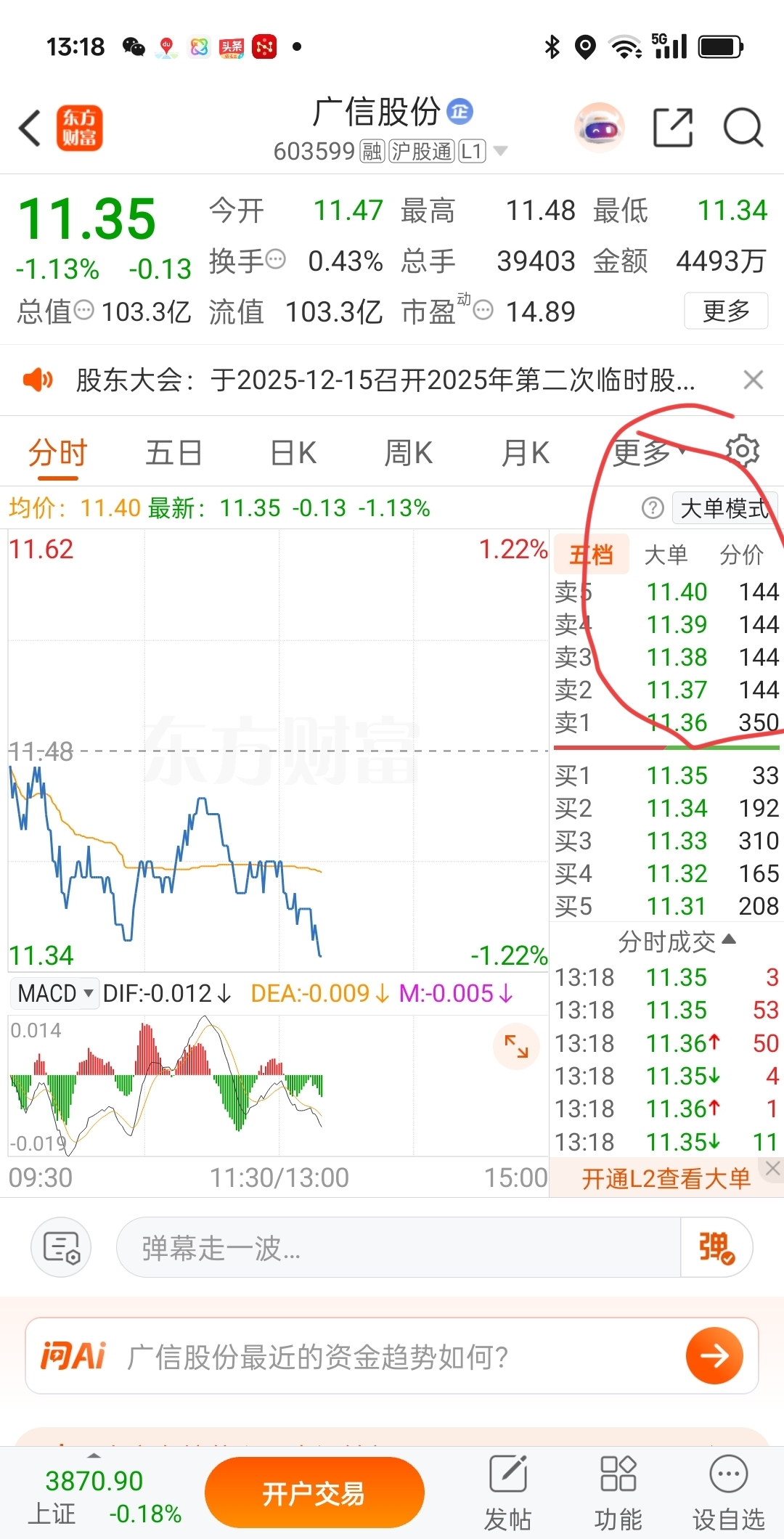 $广信股份(SH603599)$ 全是144,什么情况