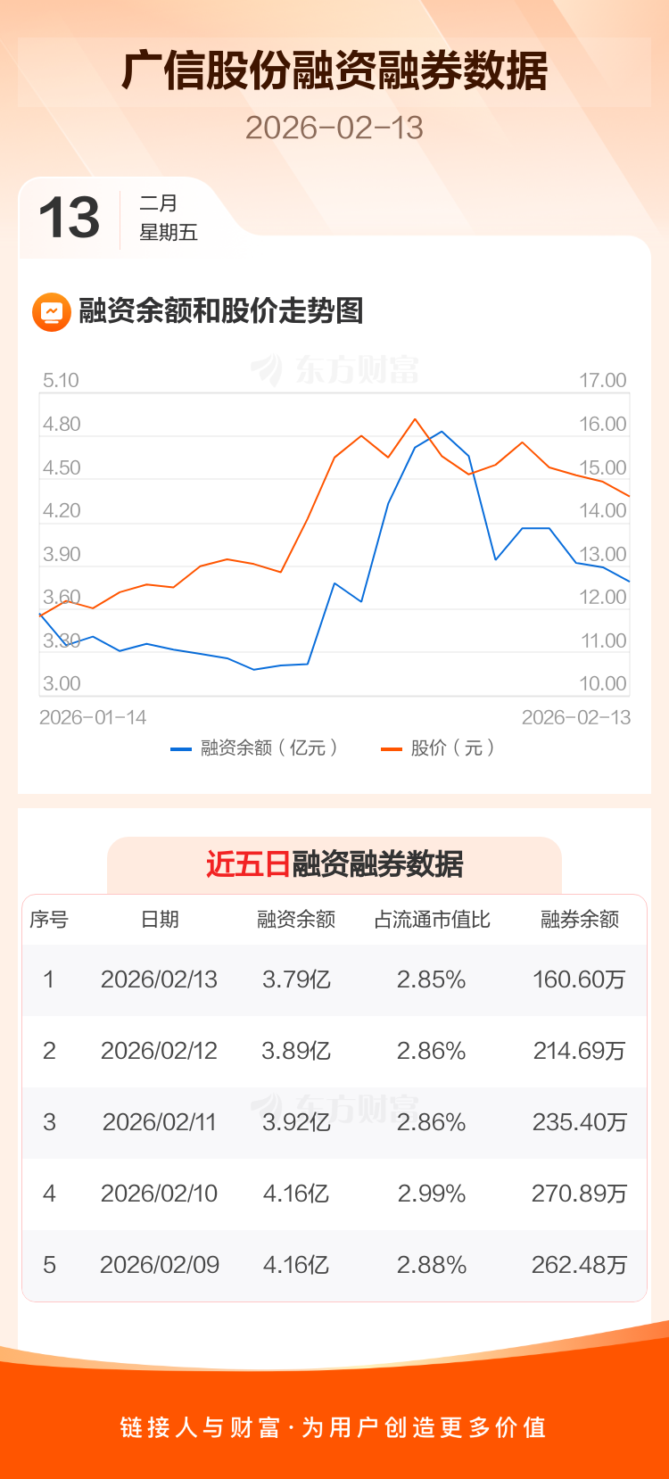 交易所最新数据显示,广信股份于2026年2月13日获融资买入2371.67万元,融资偿还3447.41万元,当日融资净偿还1075.74万元。目前,该股融资余额3.79亿,占流通市值比例为2.85%。