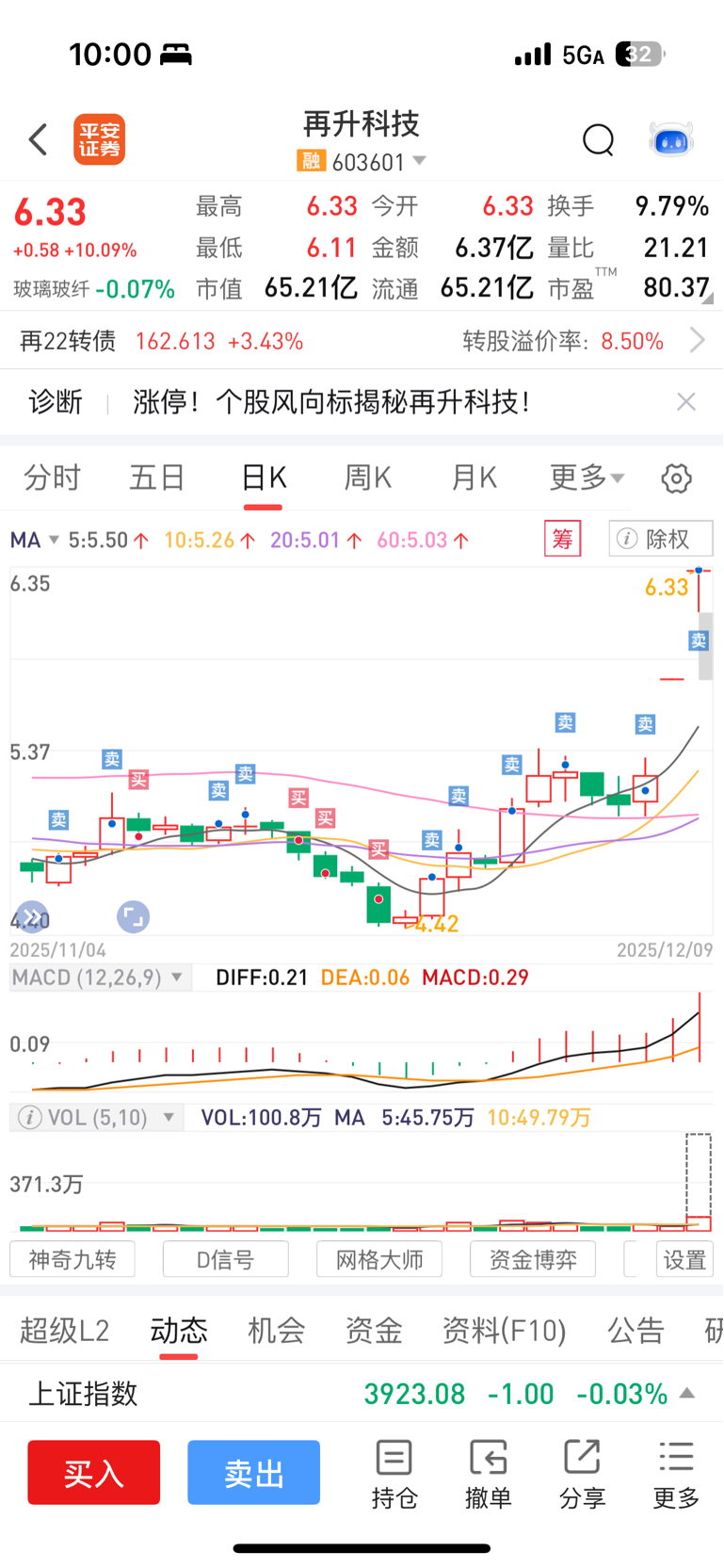 $再升科技(SH603601)$ 5块钱出了9000股,气的我吐血