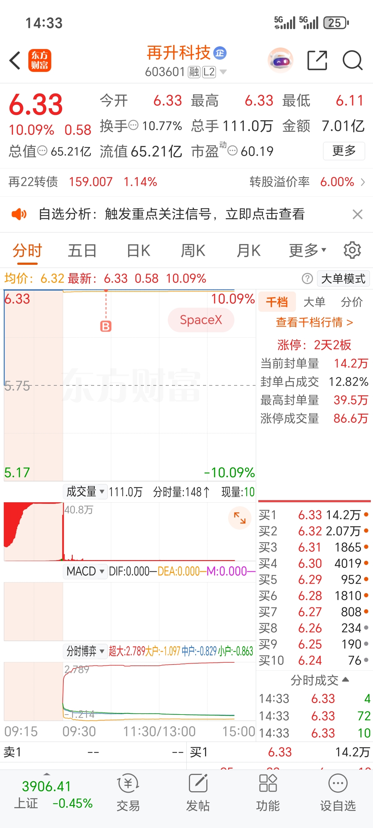 $再升科技(SH603601)$ 排到了一笔,快开门,第二笔排不到了