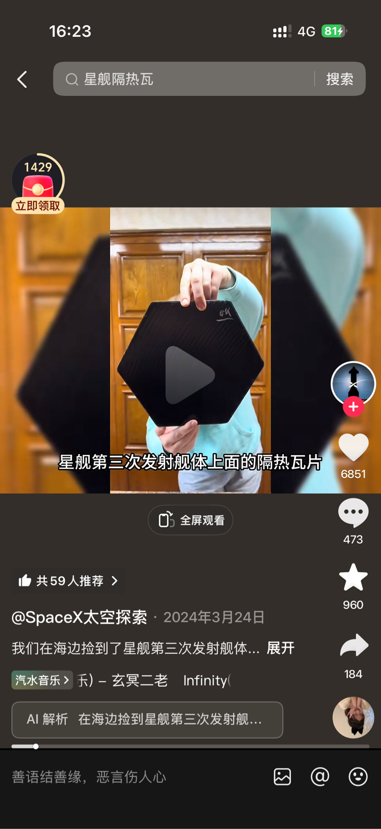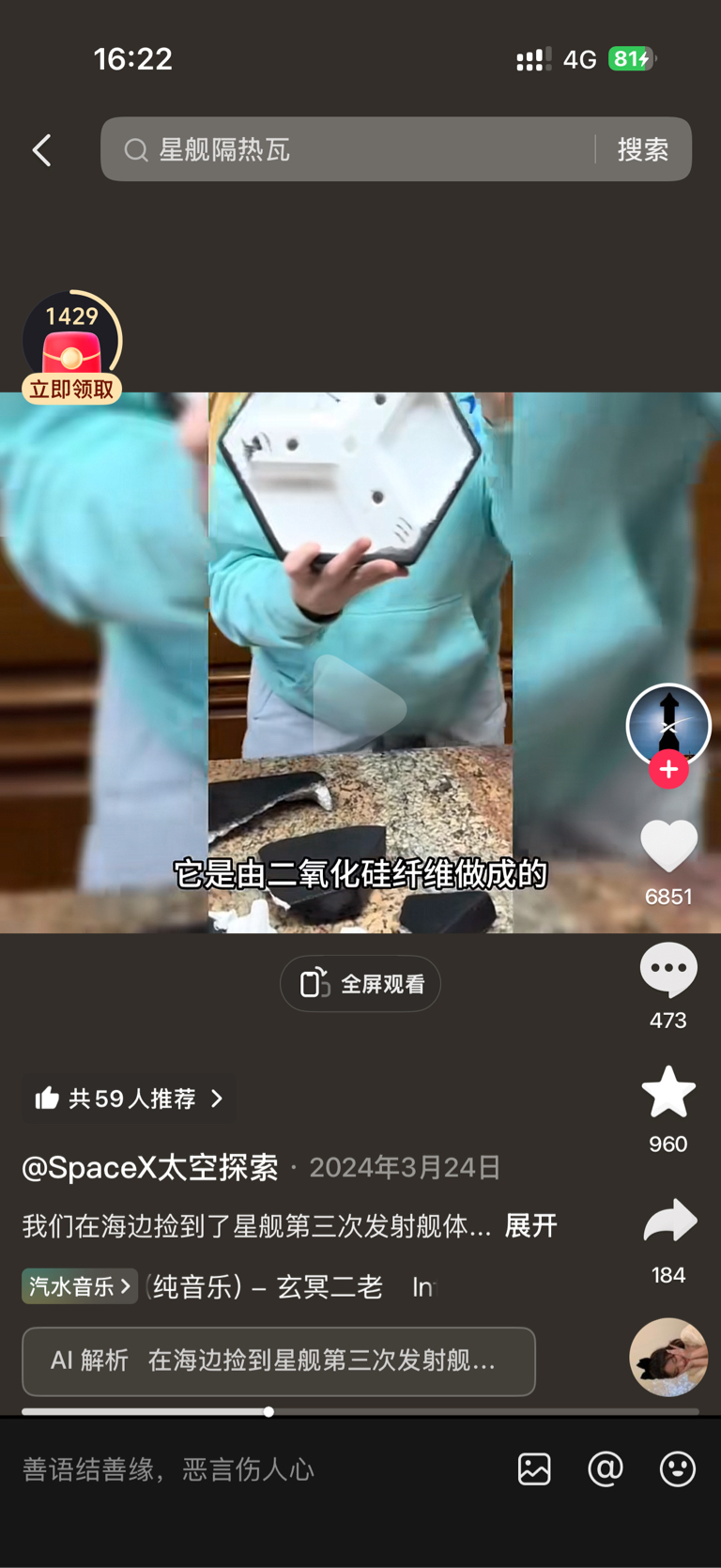 发现新大陆了,星舰隔热瓦用二氧化硅纤维做的,不就是再升科技的玻璃纤维棉吗