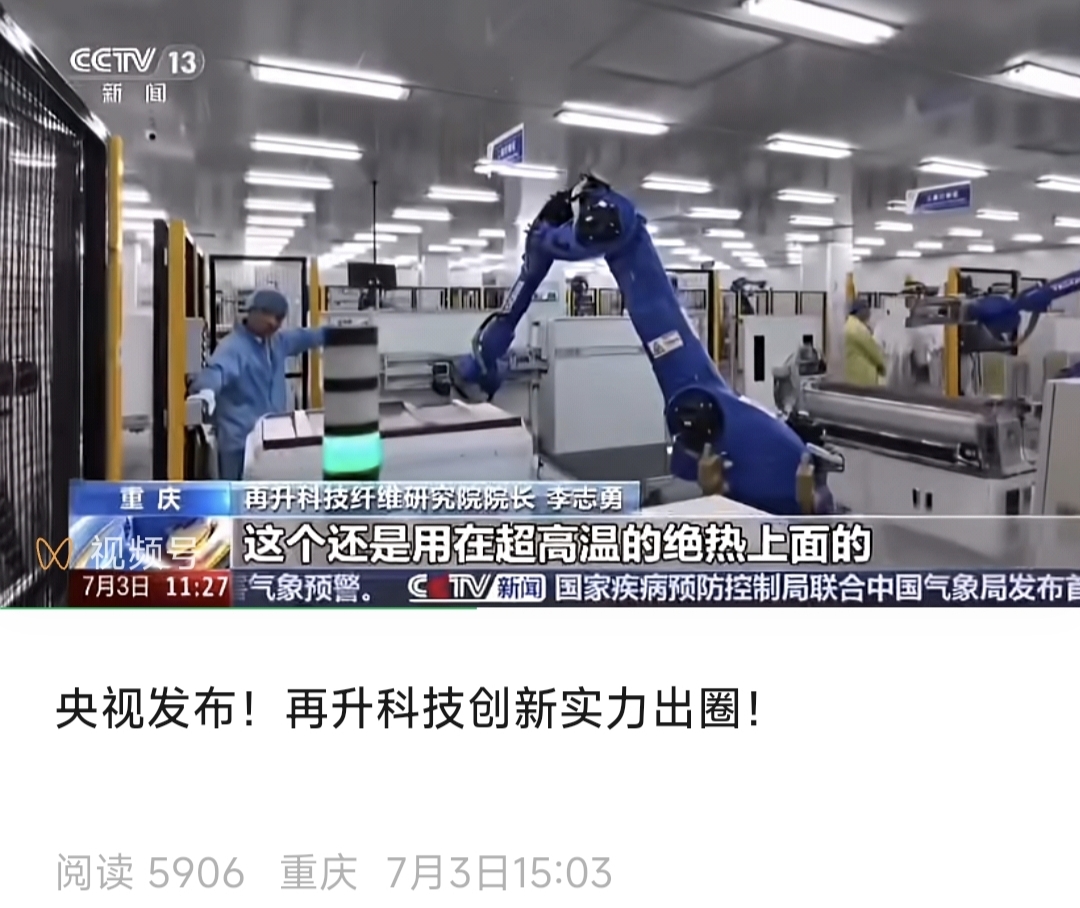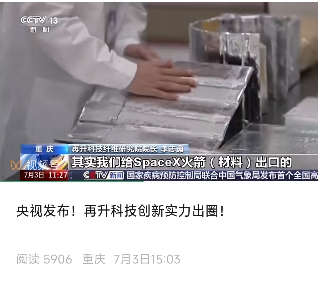 股份受让方承诺12个月内不减持公司股份。市场上就减少了6%的流通股。明天一字涨停板了!!!公司2025年7月3日在官方微信公众号转发了新闻联播报道:公司火箭超高温绝热材料向space X供货。